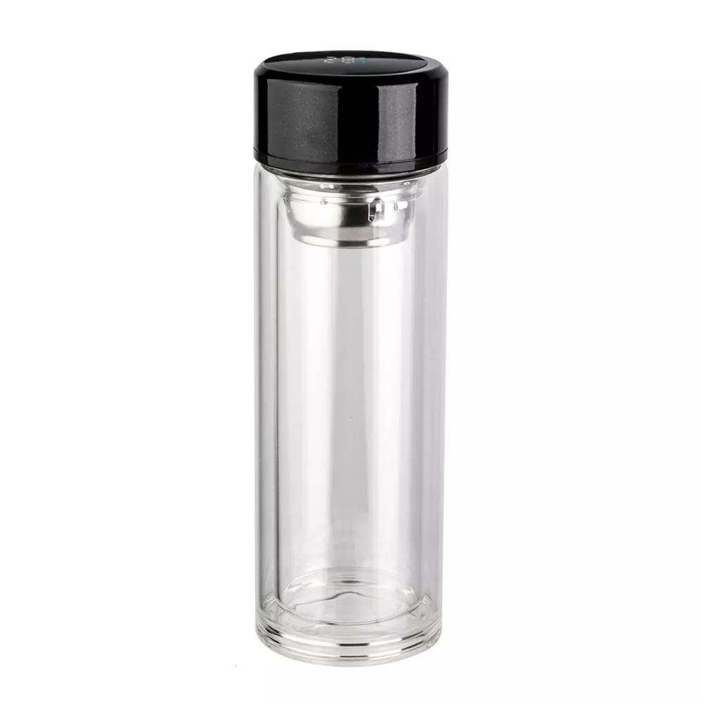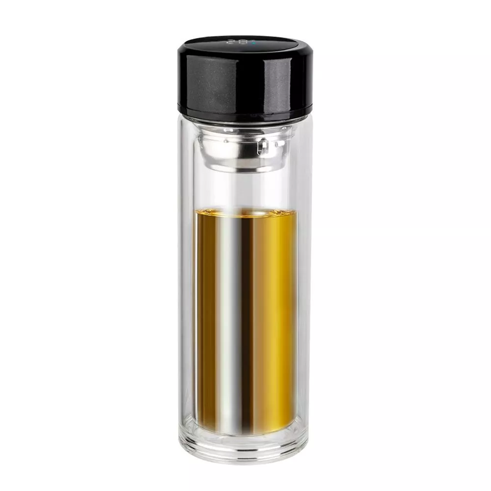 Светодиодный дисплей укажет температурный режим содержимого напитка. Емкость батареи дисплея рассчитана на 78000 касаний. Объем бутылки 350 мл. Бутылка c дисплеем Marcus выполнена из сверхпрочного боросиликатного закаленного стекла. Основное преимущество материала в том, что не разобьется и не обожжет горячим напитком Ваши руки. Внутри бутылки находится инфьюзер, который упростит процесс заваривания чая. Просто засыпьте заварку в инфьюзер, залейте кипяток в нижнюю часть бутылки, соедините, напиток готов.