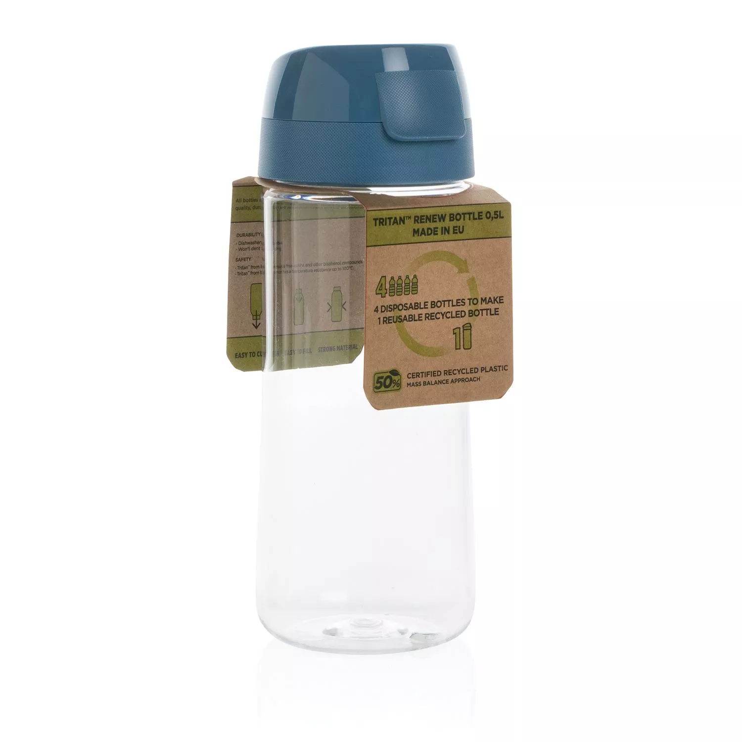 Бутылка Tritan™ Renew объемом 0,5 л сделана в Италии. Легко открыть даже одной рукой. Tritan™ Renew — инновационный пластик, в котором содержится до 50% повторно используемых материалов. Прозрачный, чистый и экологичный, не уступающий в своей прочности и долговечности. Содержание переработанного материала соответствует международному стандарту ISCC (International Sustainability and Carbon Certification).