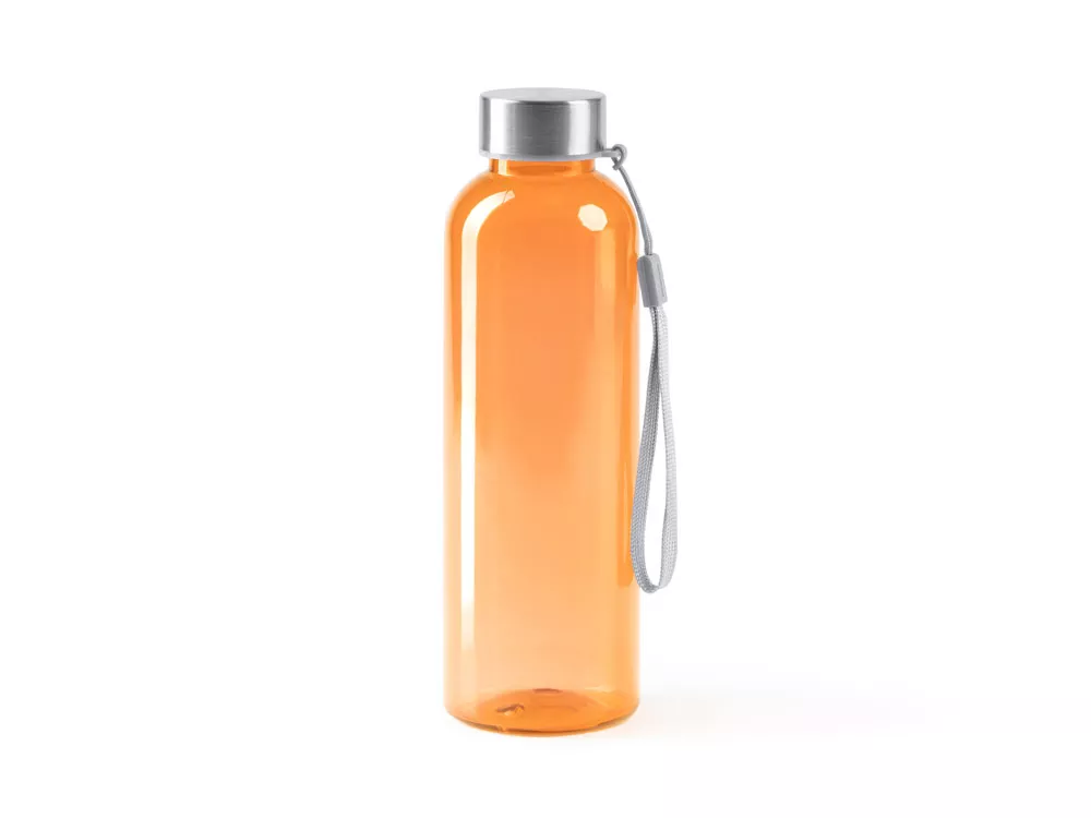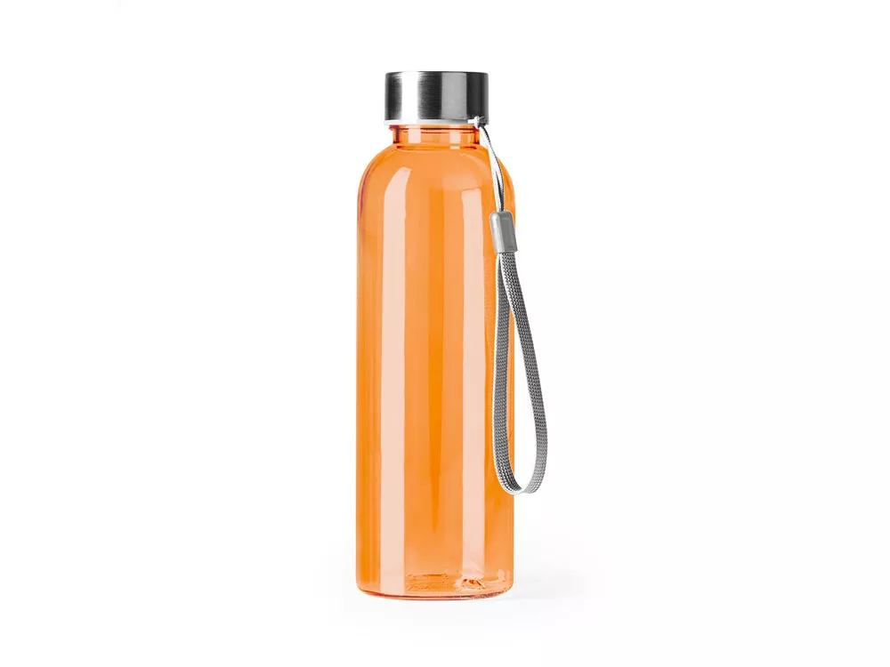 Бутылка из РПЭТ с полупрозрачным цветным корпусом. Емкость 600 мл. Ремешок для переноски в комплекте