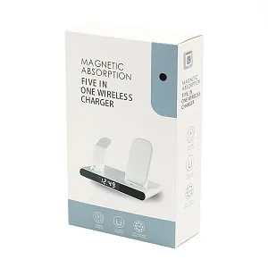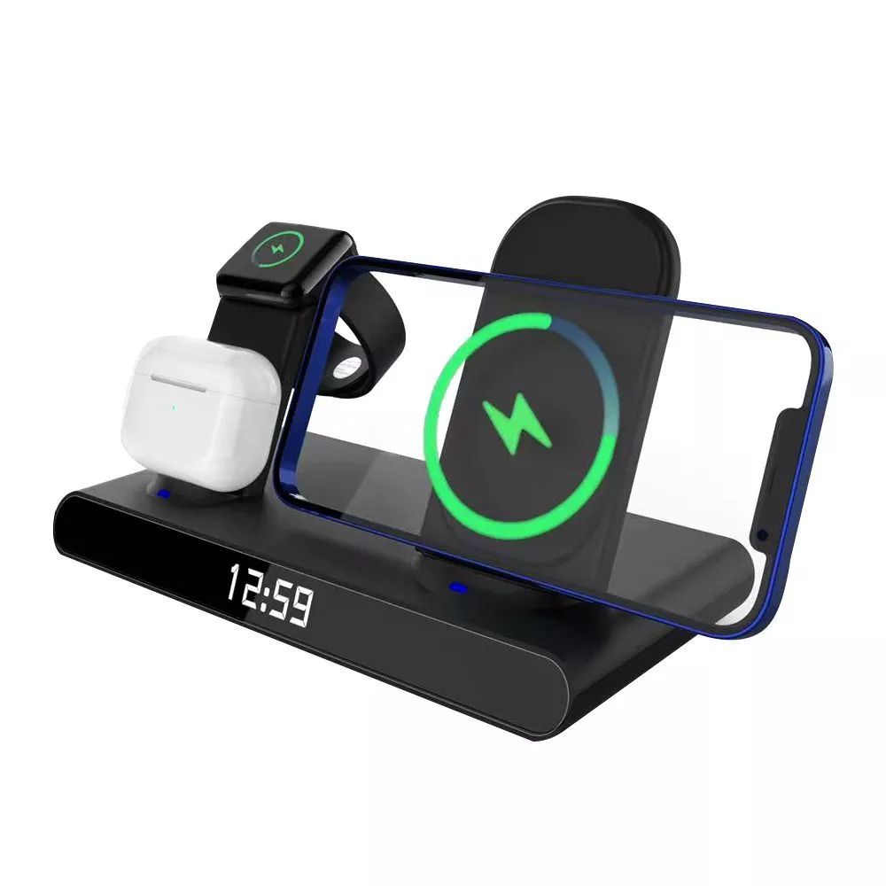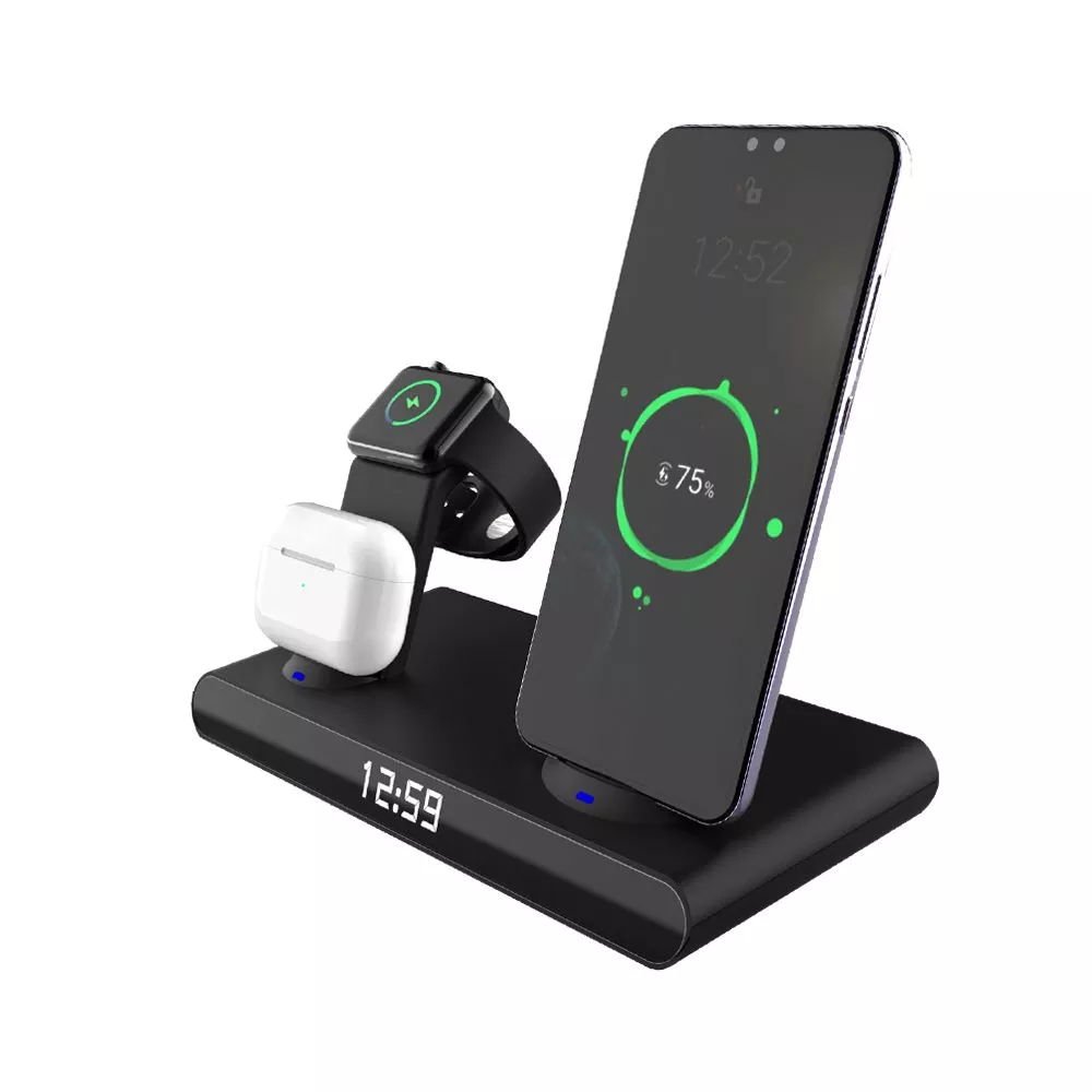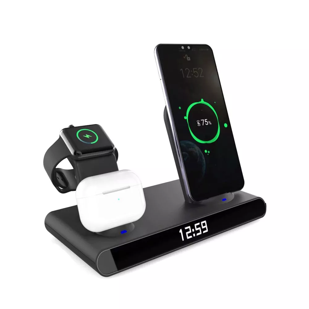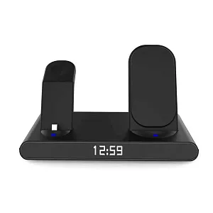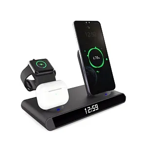 Часы электронные Abbatt мультифункциональные с беспроводной зарядкой. Особенность этих электронных часов заключается в том, что они выполянют функцию не только часов и будильника, а еще с их помощью можно заряжать свои гаджеты. Удобство беспроводной зарядки говорит само за себя - очень комфортно заряжать смартфон, часы и наушники, просто положив их на зарядную станцию, не подключая при этом к ним никаких кабелей. Также есть возможность быстрой зарядки Qi. При беспроводной зарядке устройство меньше подвержено перепадам в сети, чем при подключении к розетке, тем самым увеличивается срок службы аккумулятора. Благодаря интерфейсу Type-C (шнур идёт в комплекте 1м) ваши гаджеты будут заряжаться более эффективно, а главное - одновременно. Вы можете смотреть фильмы, слушать музыку, звонить или отправлять сообщения во время всего процесса зарядки. Входы: 9V/2A 12/2A. Выходы: Беспроводной 10W / 7.5W / 5W / USB 5V / 0.8-1A / Airpod 3W / Apple watch 2.5W