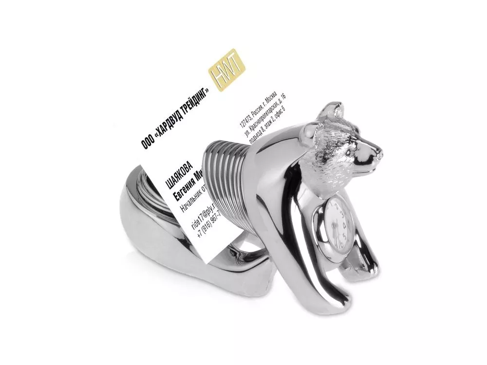 Универсальная вещь, которая понравится любому человеку на руководящей должности. Это приспособление вмещает в себе креативные часы, подставку для визиток и необычное украшение.
