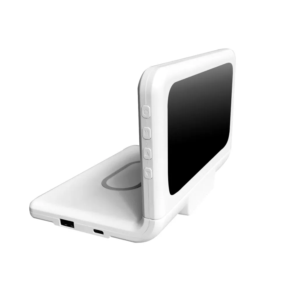 Многофункциональные электронные часы Konner с угловой формой,выдержанным дизайном LED экрана и удобной площадкой для беспроводной зарядки. Функции: Время / Температура / Будильник / Беспроводная зарядка Qi