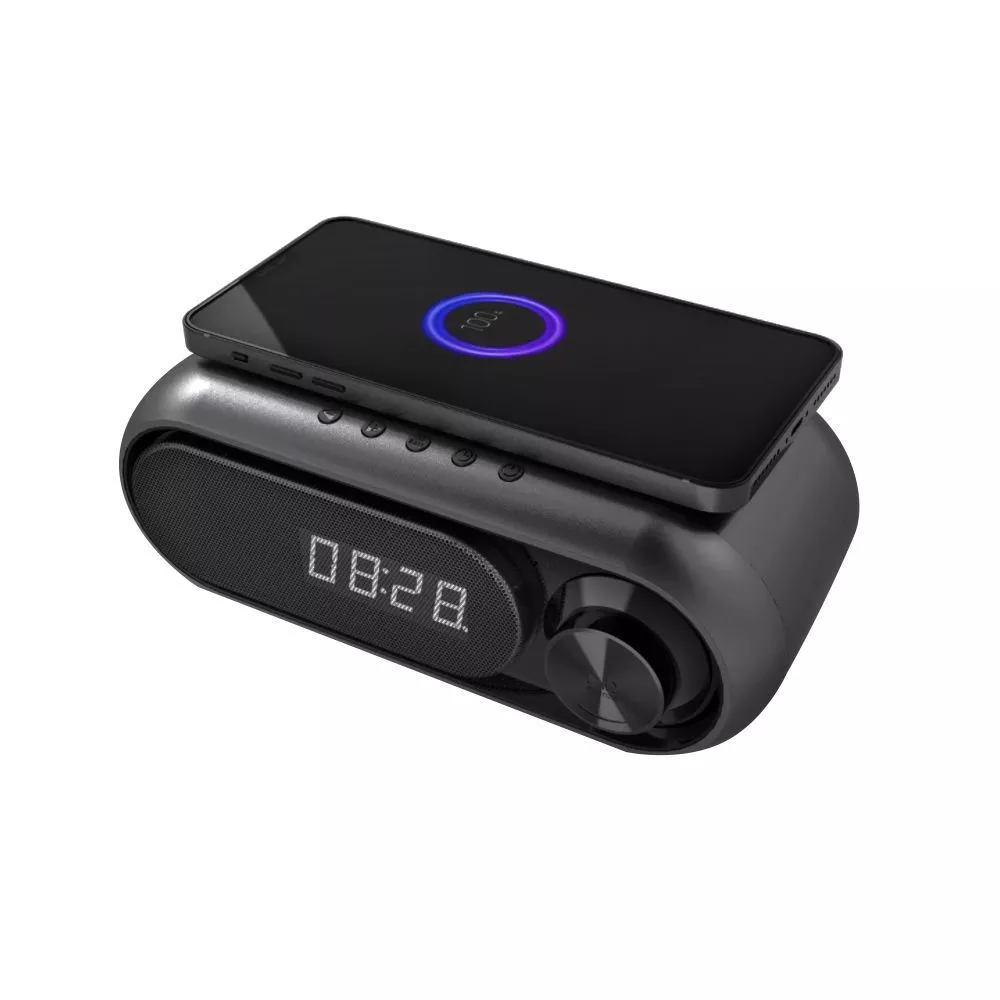 Многофункциональные электронные часы Radon с классической формой радиомагнитолы идеально подходят для любого интерьера офиса или квартиры. Функция времени и температуры на цифровом экране, возможность беспроводной зарядки по технологии Qi. Функции: Время / Температура / Будильник / Беспроводная зарядка Qi