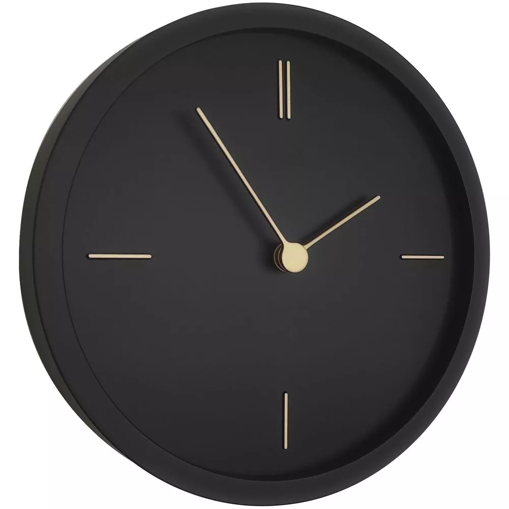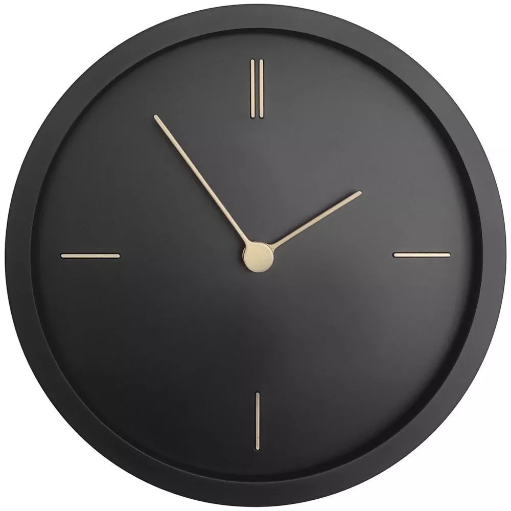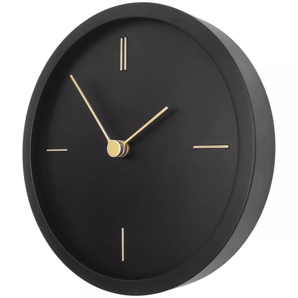 Представлены в круглом черном корпусе, на котором изящным контрастом выделяются тонкие линии часовых меток и стрелок золотистого цвета.