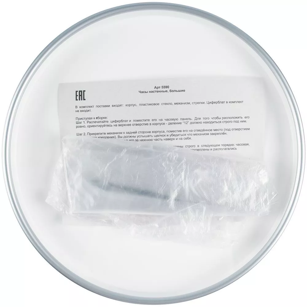 Циферблат в комплект не входит, но его можно изготовить в индивидуальном дизайне методом полноцветной печати. Просто подготовьте макет согласно конструктору, напечатайте его на плотном картоне, вырежьте по контуру и аккуратно поместите в часы. Чтобы разобрать часы, аккуратно отодвигайте пластиковые защелки на корпусе по одной и приподнимайте заднюю крышку. Для упора можно использовать ребра-полоски на задней крышке. Затем аккуратно снимите стрелки и открутите центральную гайку механизма.