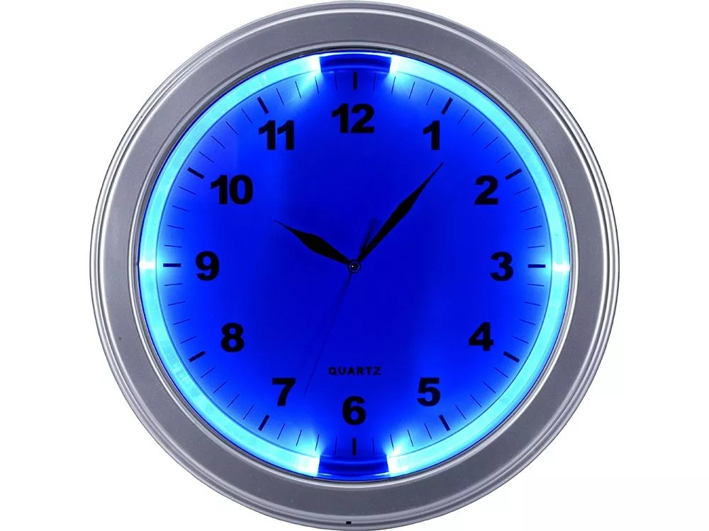 Настенные часы в пластиковом корпусе серебристого цвета имеют классический дизайн. Изюминкой этих часов является приятная и мягкая подсветка. Подсветка включается/выключается с помощью маленького рычажка On/Off, расположенного в нижней части корпуса. Отличный выбор для подарка родным и близким.