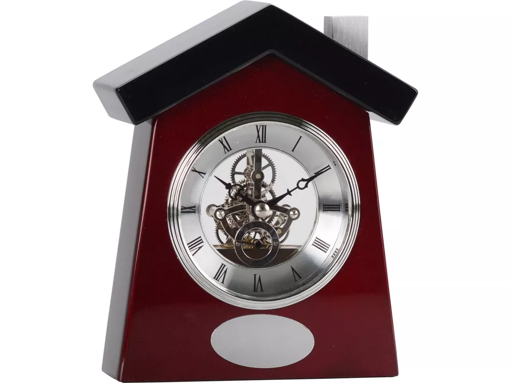 Настольные часы в форме домика будут оригинальным подарком для домашнего кабинета. Шестеренки механизма под прозрачным корпусом привносят романтическую нотку стимпанка, однако форма часов придает им более классический вид. Пластина для нанесения гравировки позволяет превратить их в индивидуальный подарок.