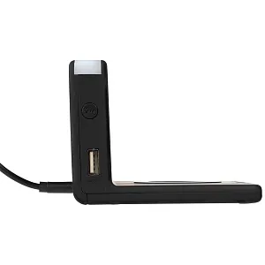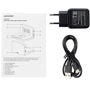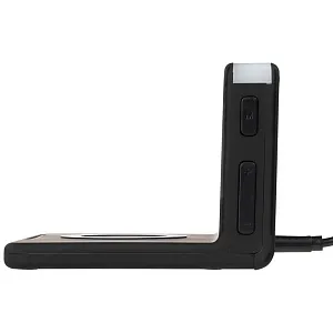 Зарядная станция совместима со всеми мобильными устройствами, поддерживающими технологию беспроводной зарядки Qi. Зарядка начнется автоматически при размещении смартфона на индукционной площадке. USB-порт для проводной зарядки расположен в торце устройства.