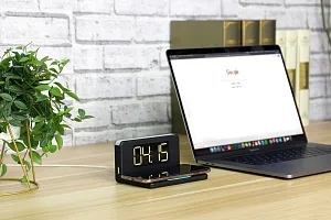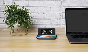 Pitstop — многофункциональное устройство, которое сочетает в себе функции настольных часов, будильника, станции для беспроводной и проводной зарядки устройств и ночника.