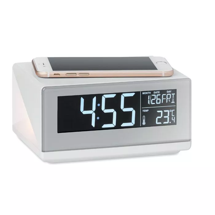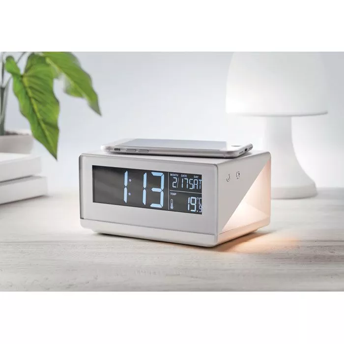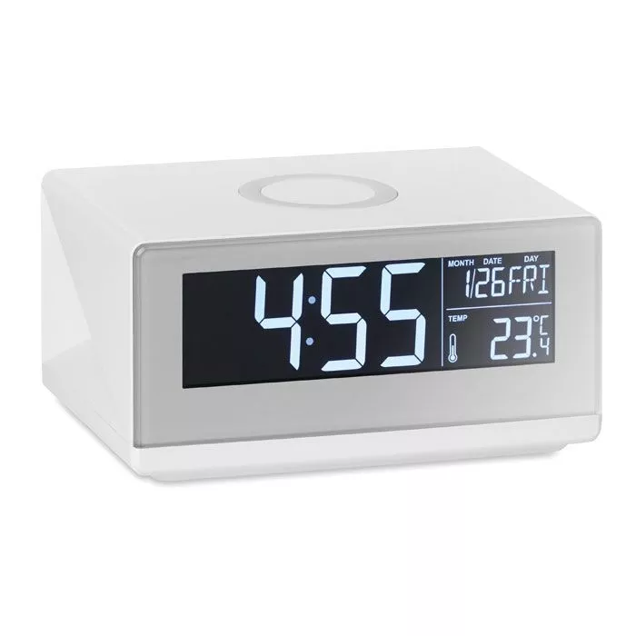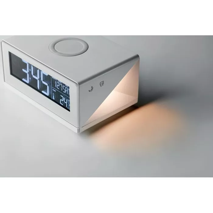 Метеостанция с беспроводной зарядкой/сенсорный будильник с ночником. В комплекте сетевой адаптер AC/DC. Мощность DC5V/1.0A. Совместима с последними андроидами, iPhone® 8, 8S и X и новее.