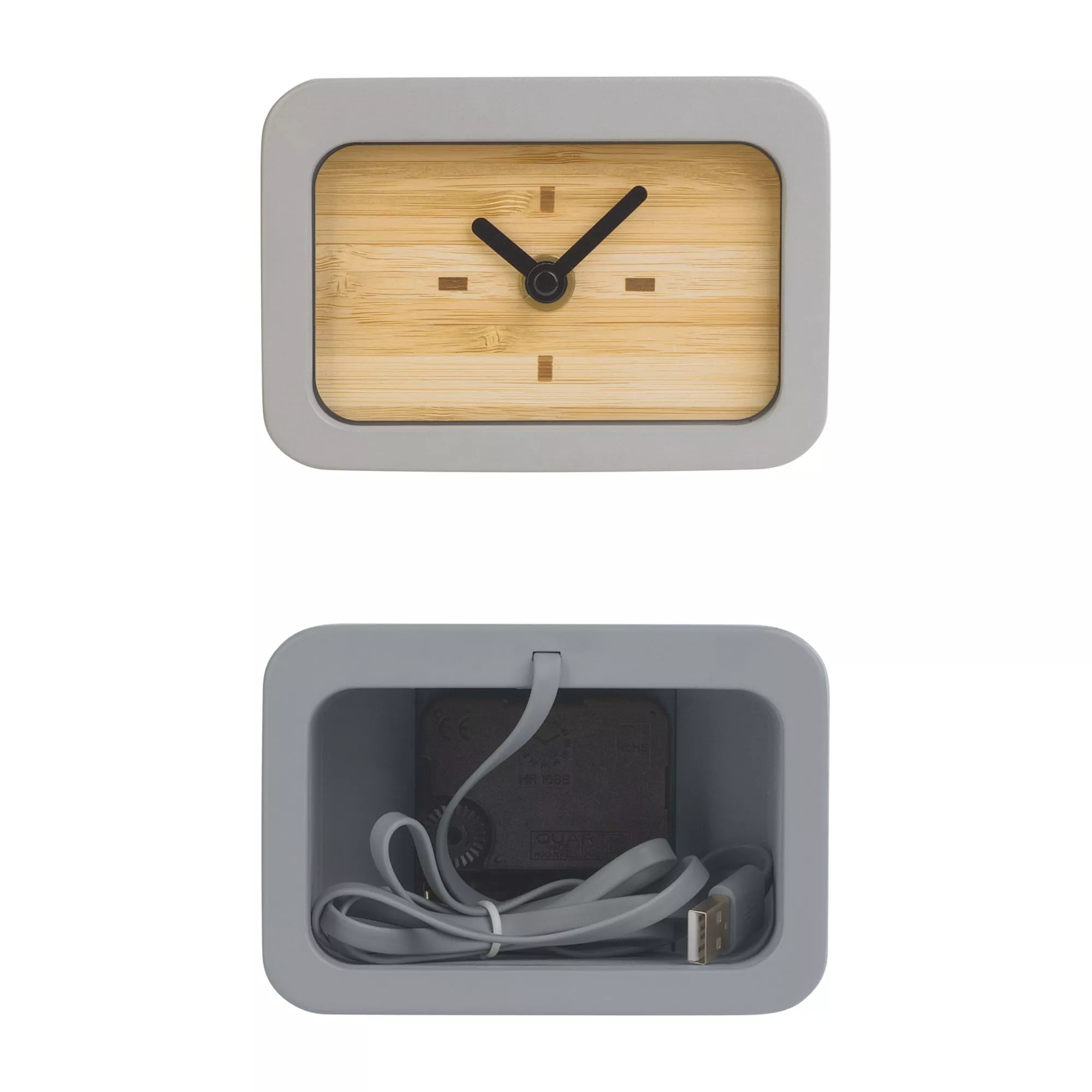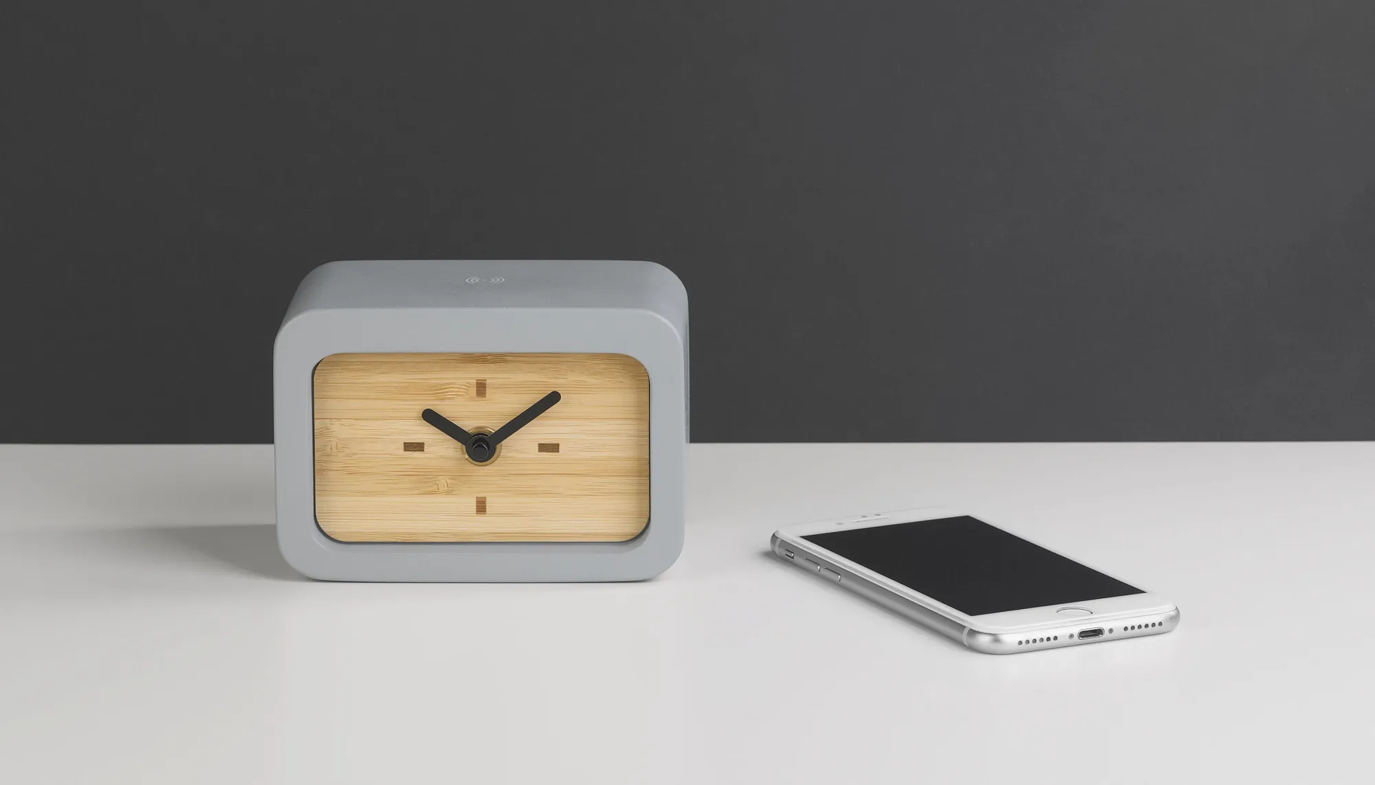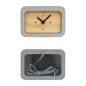 Часы работают от батарейки типа АА, мобильный формат позволяет переносить и размещать их в любом удобном месте. Для активации функции беспроводного заряда необходимо подключить часы к источнику питания с помощью встроенного кабеля USB.