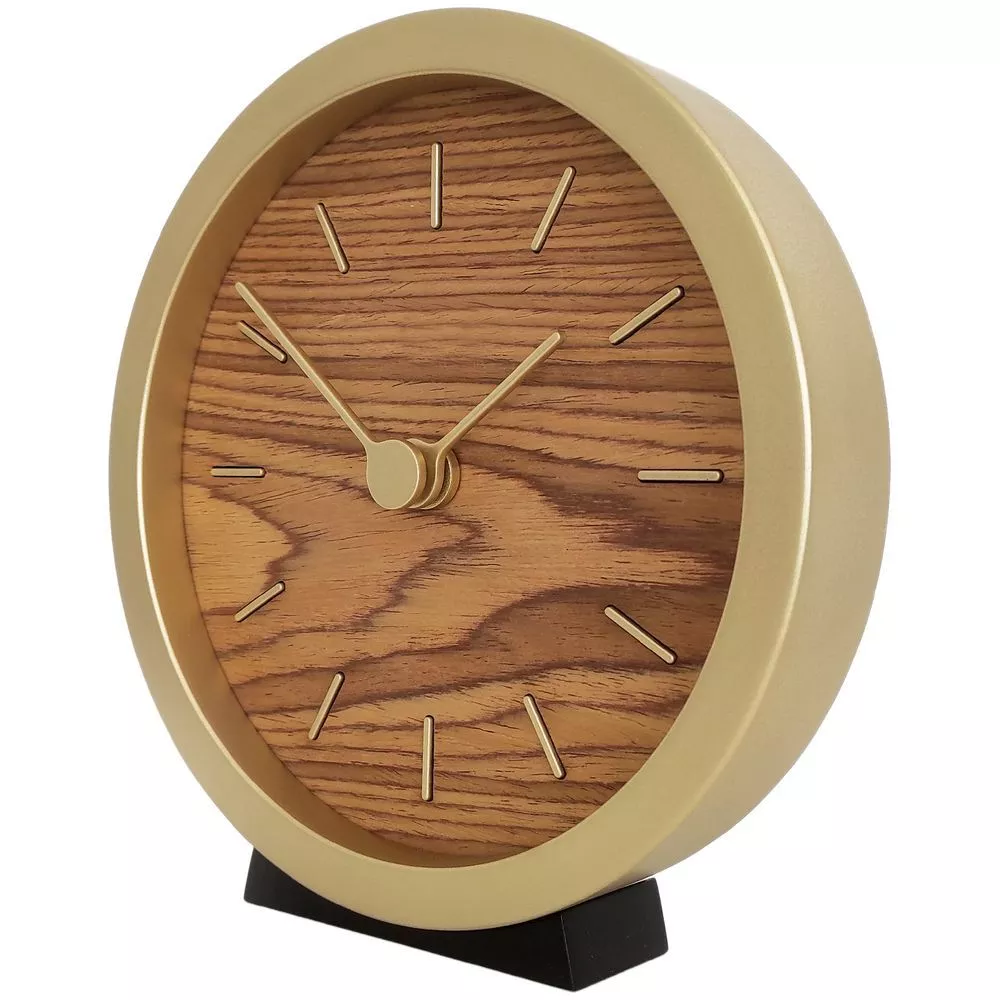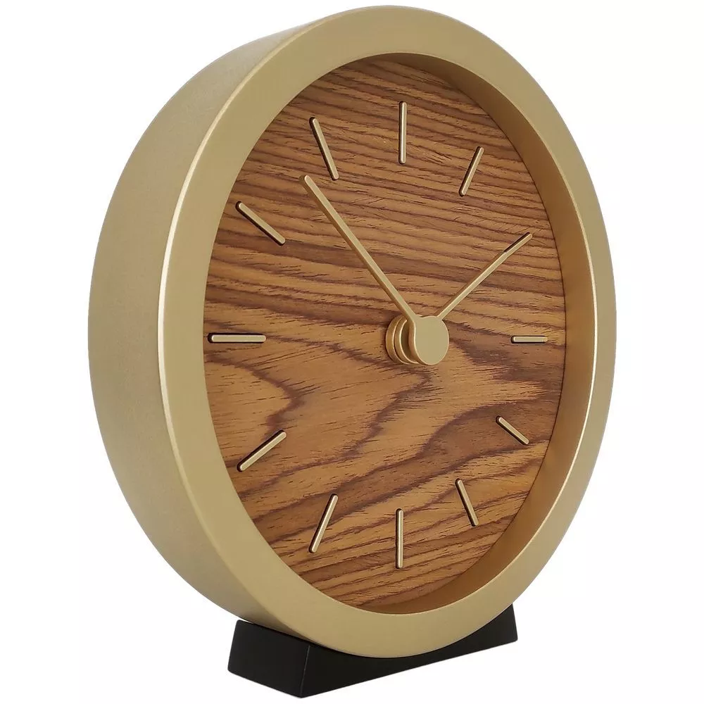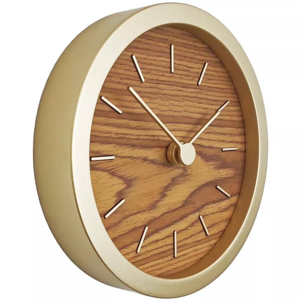 Гармоничное сочетание натурального шпона теплого оттенка и приглушенного золотистого обрамления — в универсальных часах Gracie. Часы можно повесить на стену или разместить их на столе или полке — для этого в коплект к циферблату идет специальная подставка.