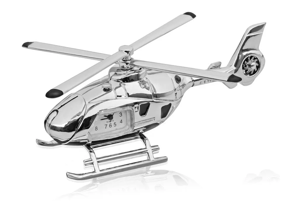 Оригинальные часы в форме вертолета станут хорошим бизнес-сувениром. Корпус вертолета выполнен из полированного металла. Вертолет изготовлен с высокой степенью детализации.