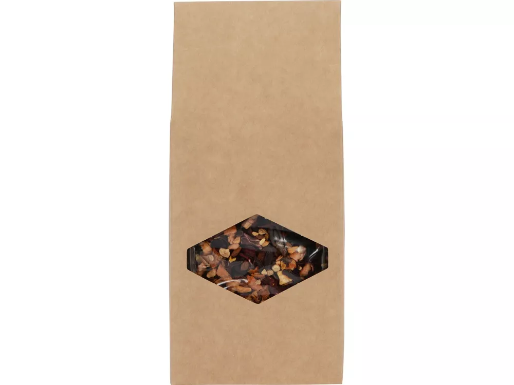 Авторский купаж на основе гибискуса и восточных пряностей с добавлением кусочков фруктов. Ароматная фруктово-пряная смесь предназначена для приготовления безалкогольного глинтвейна. Также подходит для классического исполнения в сочетании с красным вином. Рекомендуется добавление сахара, меда или других подсластителей. Цифровая печать (Наклейка) на данный товар осуществляется бесплатно. Оплачивается только настройка оборудования в размере 800 рублей на весь тираж.