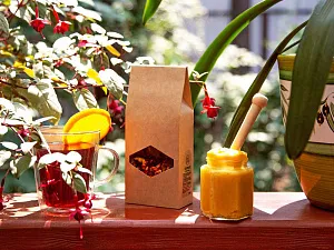 Авторский купаж на основе гибискуса и восточных пряностей с добавлением кусочков фруктов. Ароматная фруктово-пряная смесь предназначена для приготовления безалкогольного глинтвейна. Также подходит для классического исполнения в сочетании с красным вином. Рекомендуется добавление сахара, меда или других подсластителей.