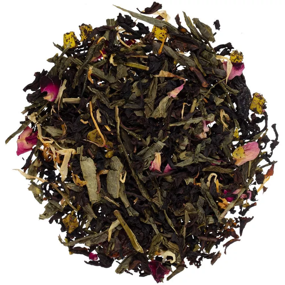 Смесь черного цейлонского и зеленого китайского чая «Cенча» с добавлением лепестков цветов, кубиков сушеных фруктов и тропическим ароматом.Состав: чай черный крупнолистовой, зеленый чай «Cенча», сушеный виноград, кубики ананаса сушеные, лепестки календулы, лепестки роз, пищевой ароматизатор «Фруктовый».