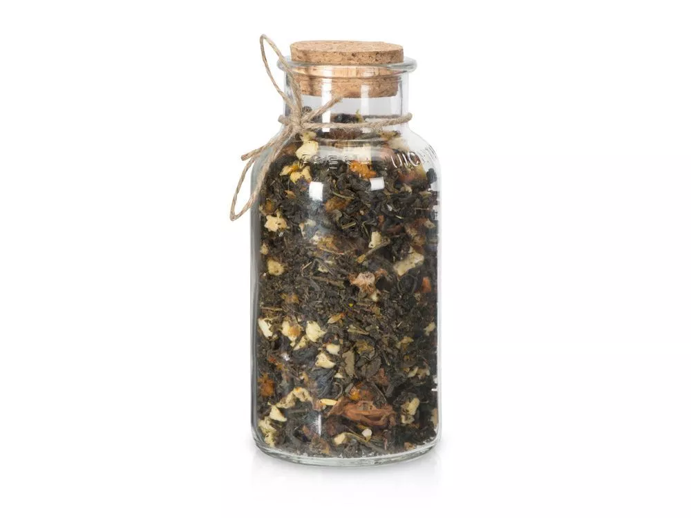 Чай с соком - натуральный, вкусный и полезный для здоровья напиток. Это не просто чай с фруктовыми кусочками и добавками, а чайные листья, наполненные соком свежайших плодов. Для изготовления 2 тонн такого чая используется 20 тонн свежих фруктов. По технологии чайные листья смешиваются с нарезанными кусочками фруктов и пропитываются выделяющимся соком. После этого вобравшие сок листья чая высушиваются и смешиваются с сублимированными ягодами или фруктами, образуя уникальный напиток. Состав: чай зелёный с ананасом и соком ананаса (чай зелёный байховый крупнолистовой, кусочки ананаса, сок ананаса), яблоко сушеное, облепиха сублимированная, ароматизатор натуральный Яблоко.