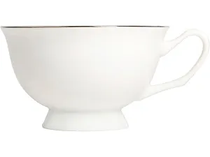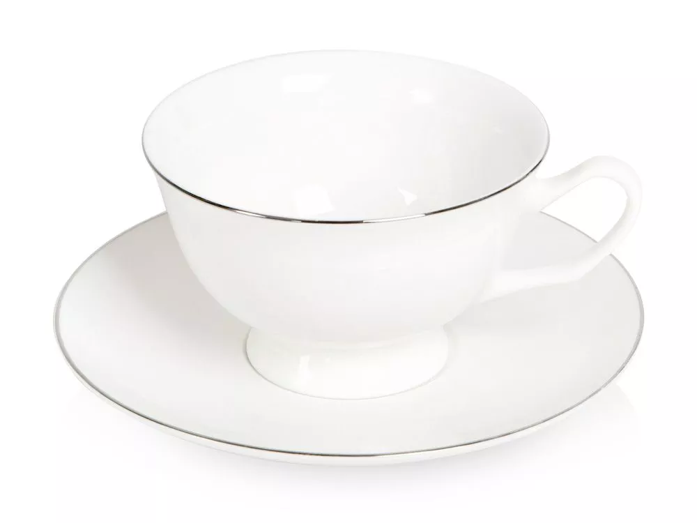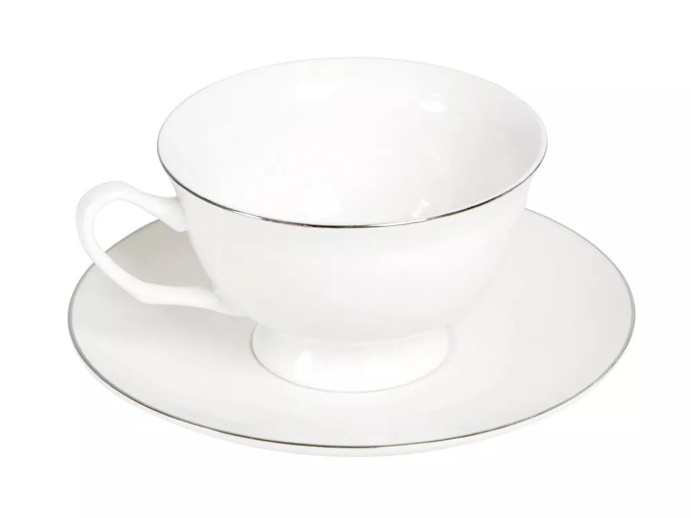 Изящная чайная пара с серебристым кантом от Eat&Bite создаст особенную атмосферу чаепития по-английски. Костяной фарфор очень лёгкий и тонкий и слегка просвечивается. Но несмотря на это, посуда из него достаточно прочная и прослужит вам долгие годы. Эта чайная пара прекрасно подойдёт не только для чая, но и для кофе. • Утончённый дизайн • Костяной фарфор • Подходит как для чая, так и для кофе Чайную пару рекомендуется мыть вручную с использованием мягких моющих средств и не использовать в микроволновке. Тампопечать (1 цвет (белые изделия)) на данный товар осуществляется бесплатно. Оплачивается только настройка оборудования в размере 4000 рублей на весь тираж.