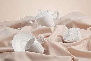 Посуда выполнена из костяного фарфора, что делает ее необычайно легкой и прочной одновременно.