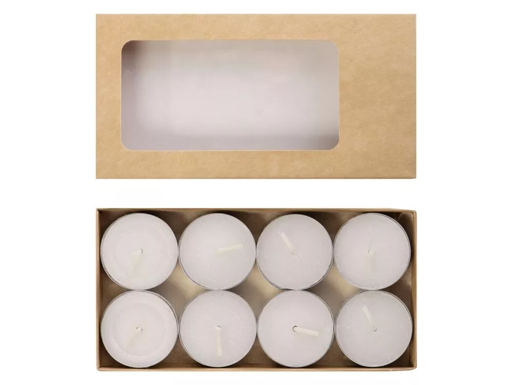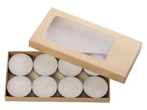 Эти чайные свечи — не просто интерьерный аксессуар, но и немного магическая вещь: при горении воск становится прозрачным, чтобы открыть спрятанное на дне предсказание. Каждое из них — приятное, мотивирующее, поэтому набор можно смело дарить, не боясь обидеть адресата или огорчить его. Свечи выполнены из белого воска без запаха, упакованы в крафтовую коробку с прозрачным окошком и перевязаны шелковистой ленточкой. В каждой коробке — 8 свечей. - только приятные предсказания - поставляется в подарочной упаковке - без запаха - стандартные по размеру, впишутся в любой стандартный подсвечник для чайной свечи Цифровая печать (наклейка на белой пленке) на данный товар осуществляется бесплатно. Оплачивается только настройка оборудования в размере 950 рублей на весь тираж.