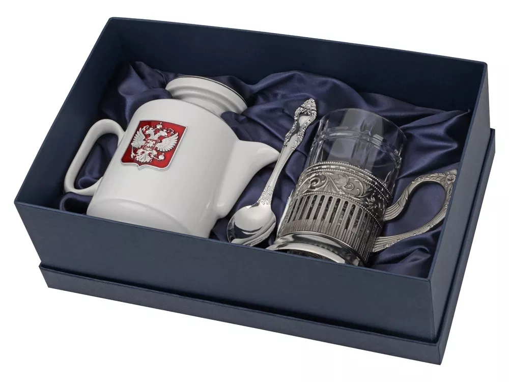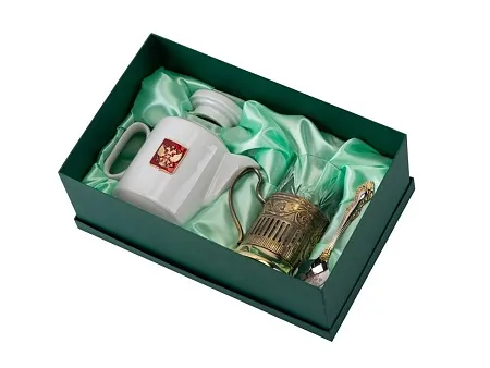 Чайный набор ЭГОИСТ состоит из серебристого подстаканника, хрустального стакана, ложки и фарфорового чайника. Если вы выбираете подарок для ценителей русской культуры и дореволюционной эстетики, то такой чайный набор станет идеальным вариантом.