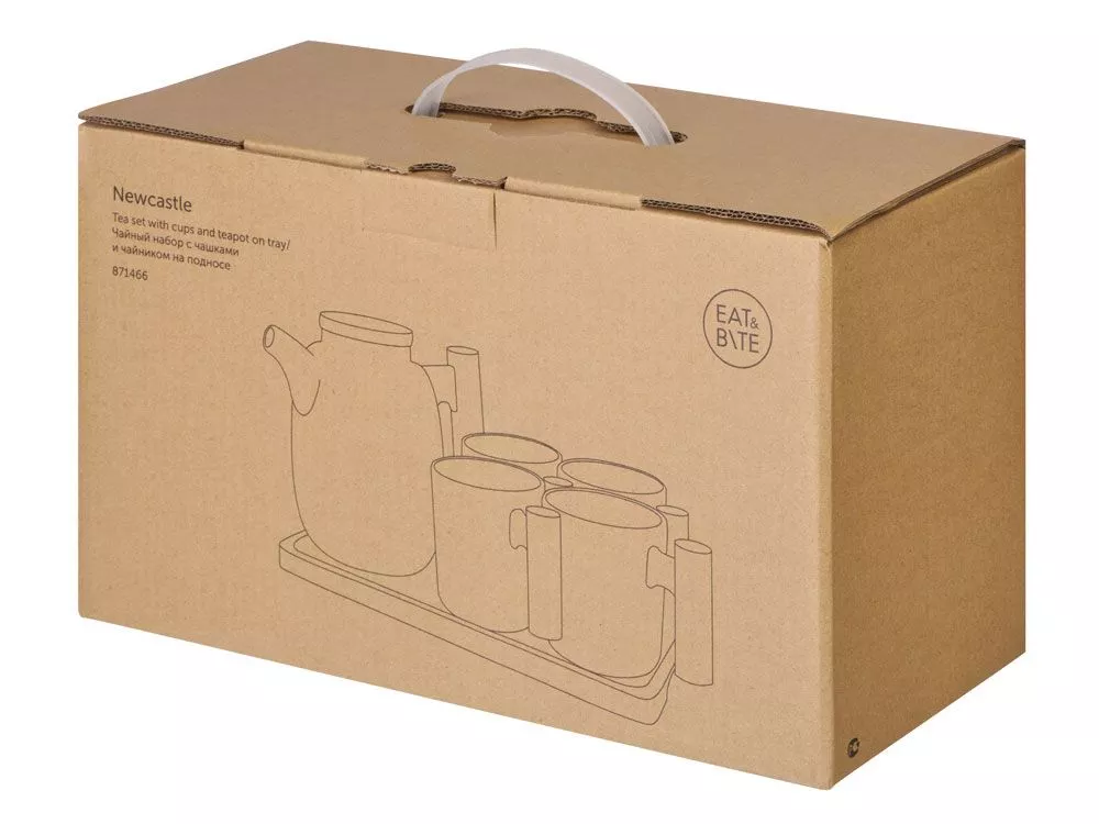 Чайный набор специально для теплой беседы впишется не только в интерьер любой кухни или гостиной, но и в офисный — благодаря лаконичному и минималистичному дизайну. В облике Newcastle органично сочетаются гладкий легкий костяной фарфор и бамбук, хранящий природное тепло. Ручки — удобные, эргономичной формы. - поднос позволяет компактно разместить набор при хранении и удобен для подачи - бамбуковые детали — необычный акцент - минималистичный дизайн набора делает его идеальным фоном для лого Гравировка (CO2 лазер) (Без чернения) на данный товар осуществляется бесплатно. Оплачивается только настройка оборудования в размере 1100 рублей на весь тираж.