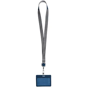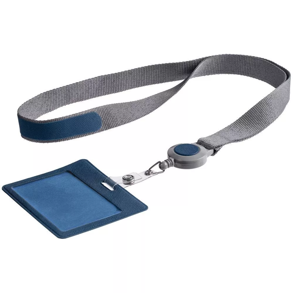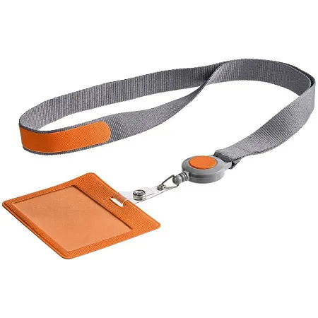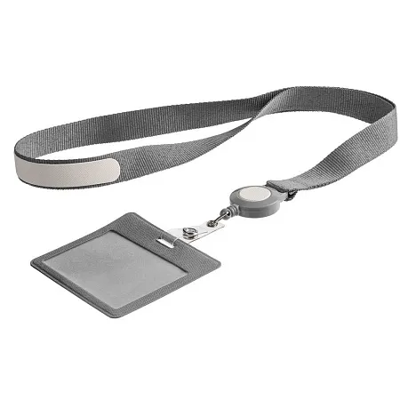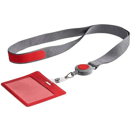 Чехол для пропуска с пластиковым окошком из искусственного материала со съемным пластиковым клипом, прикрепленный пластиковым ретрактором к ленте.