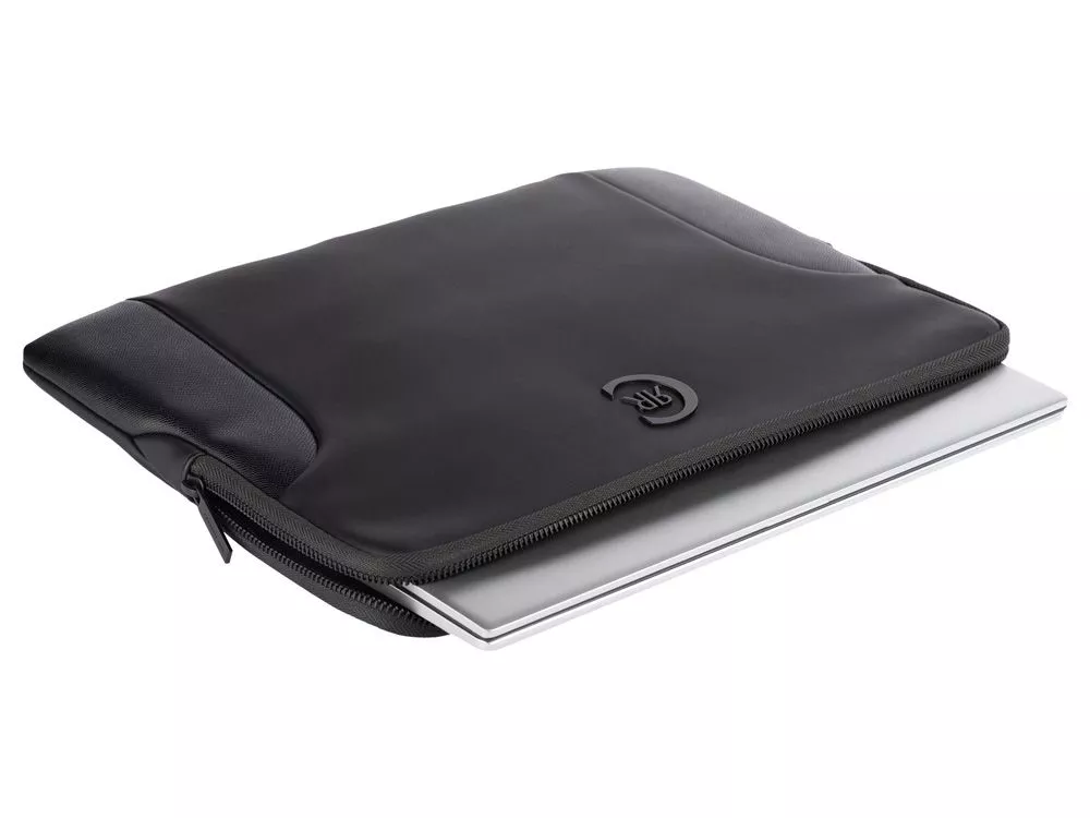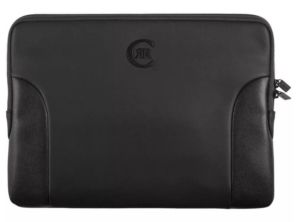 Модный чехол для ноутбука Forbes сделан из мягкой матовой черной эко кожи c отделкой из текстурной кожи и украшен логотипом Cerruti 1881. Чехол выглядит очень современно и стильно.