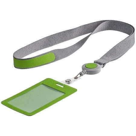 Чехол для пропуска с пластиковым окошком из искусственного материала со съемным пластиковым клипом, прикрепленный пластиковым ретрактором к ленте.
