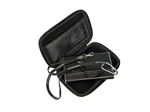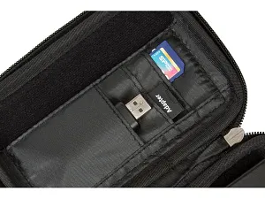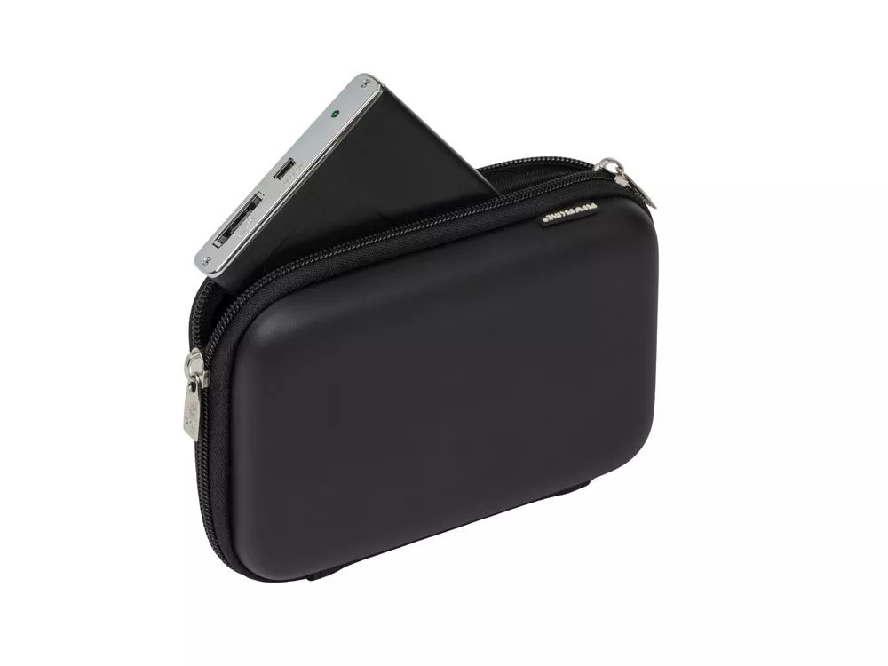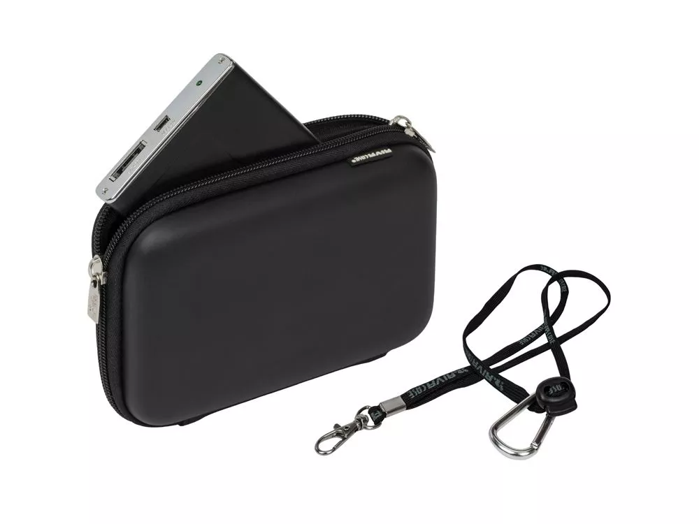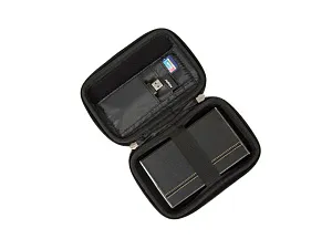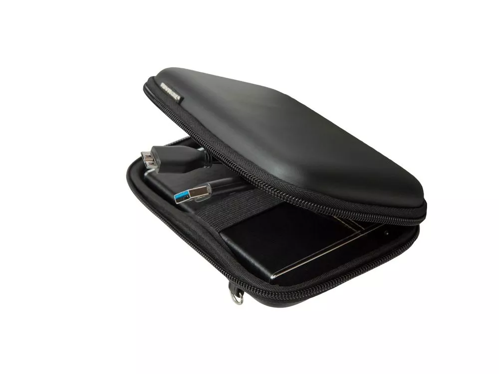Чехол для внешнего жесткого диска (HDD) или GPS. • Подходит для большинства 2.5 HDD или 5.3 GPS • Чехол создан из высококачественного материала EVA, он надежно защищает от внешних воздействий, случайных ударов и царапин, а также от пыли и влаги. • Предусмотрена возможность крепления на поясном ремне. • В комплекте ремень для ношения чехла на плече или на шее. • Устройство надежно крепится внутри чехла специальной фиксирующей лентой, кроме того предусмотрены дополнительные внутренние карманы для кабеля, карт памяти и аксессуаров. • Двойная застежка молния для удобного доступа к устройству.