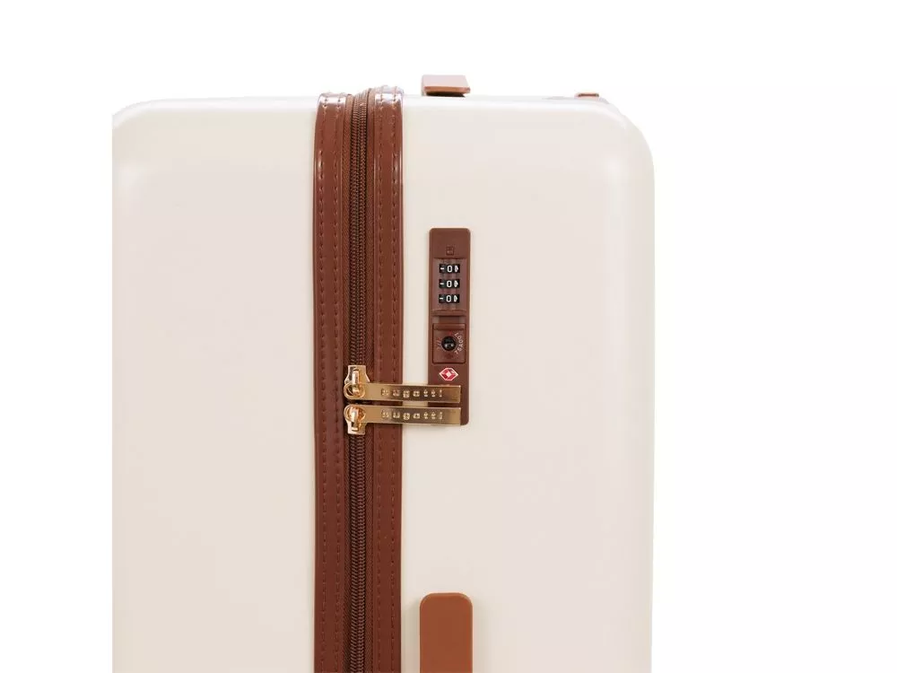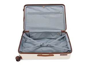 AMELIA - невероятная коллекция чемоданов в ретро стиле. Приглашаем вас в мир изящной элегантности и практичной изысканности - в мир потрясающей коллекции чемоданов AMELIA. Наши чемоданы – не просто средства для путешествий, это искусно созданные аксессуары, воплощающие утонченный стиль и комфорт. AMELIA воплощает собой неповторимый образ, сочетающий эстетику ретро с современной функциональностью. Вся товарная линейка представлена в великолепных темно-изумрудном и кремовом оттенках. Контрастные детали насыщенного коричневого цвета, бронзовые ручки и фурнитура идеально дополняют дизайн, подчеркивают индивидуальность и выразительность каждой модели. Изготовленные из высококачественного АБС-пластика и поликарбоната, чемоданы AMELIA обладают удивительной прочностью и легкостью. Четыре резиновых колеса с бесшумным ходом и возможностью поворота на 360° обеспечивают плавное передвижение по любой поверхности, сохраняя при этом полную маневренность. Интегрированный замок TSA с трехзначным кодом гарантирует защиту вашего багажа от несанкционированного доступа. Продуманная концепция больших отделений с перегородкой на молнии и дополнительными карманами максимально оптимизирует использование внутреннего пространства. Легкая телескопическая ручка с несколькими положениями фиксации обеспечивает комфорт в использовании для людей разного роста. Удобные ручки сбоку и на дне корпуса облегчают загрузку и выгрузку чемодана. Боковые держатели позволяют разместить дополнительные дорожные аксессуары. Коллекция чемоданов AMELIA – это виртуозное сочетание эксклюзивного дизайна, комфорта и надежности, созданное для тех, кто ценит эстетику и функциональность в каждом своем путешествии. СВОЙСТВА Внутренняя организация: основное отделение на молнии с 2 отсеками, сетчатой перегородкой с карманом на молнии, дополнительным карманом на молнии и 2 фиксирующими ремнями. Внешняя организация: телескопическая ручка, интегрированный кодовый замок TSA, 4 двойных колеса, боковая ручка, ручка на дне, боковые держатели. Размер: 50 х 29 х 76 см Объём: 85 л Вес: 4,70 кг Материал: Поликарбонат / АБС-пластик