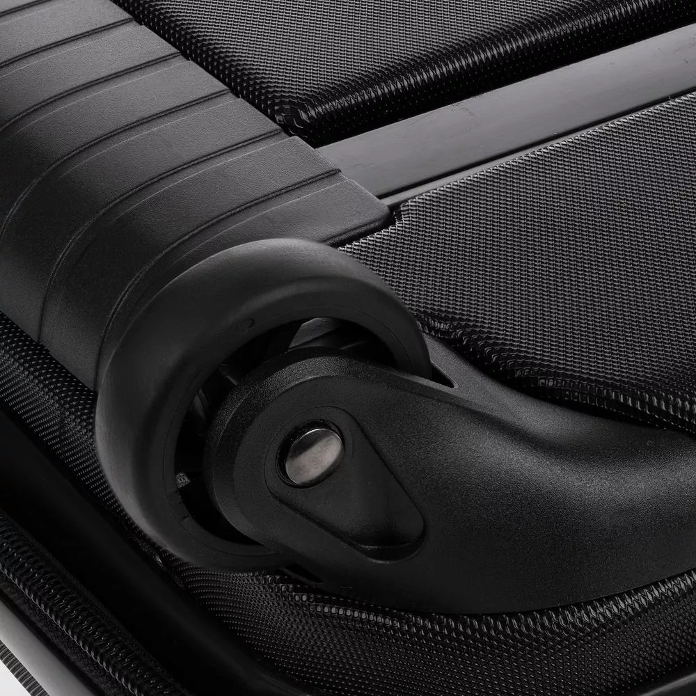Для изготовления корпуса использован ударопрочный АБС-пластик последнего поколения, а расширение чемодана сделано из очень плотной водонепроницаемой ткани, которая идеально подходит для эффектных принтов больших размеров.