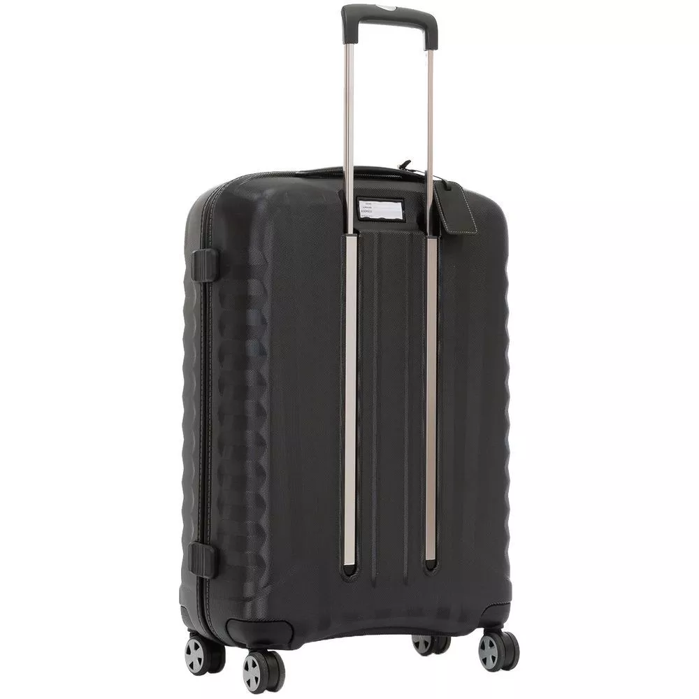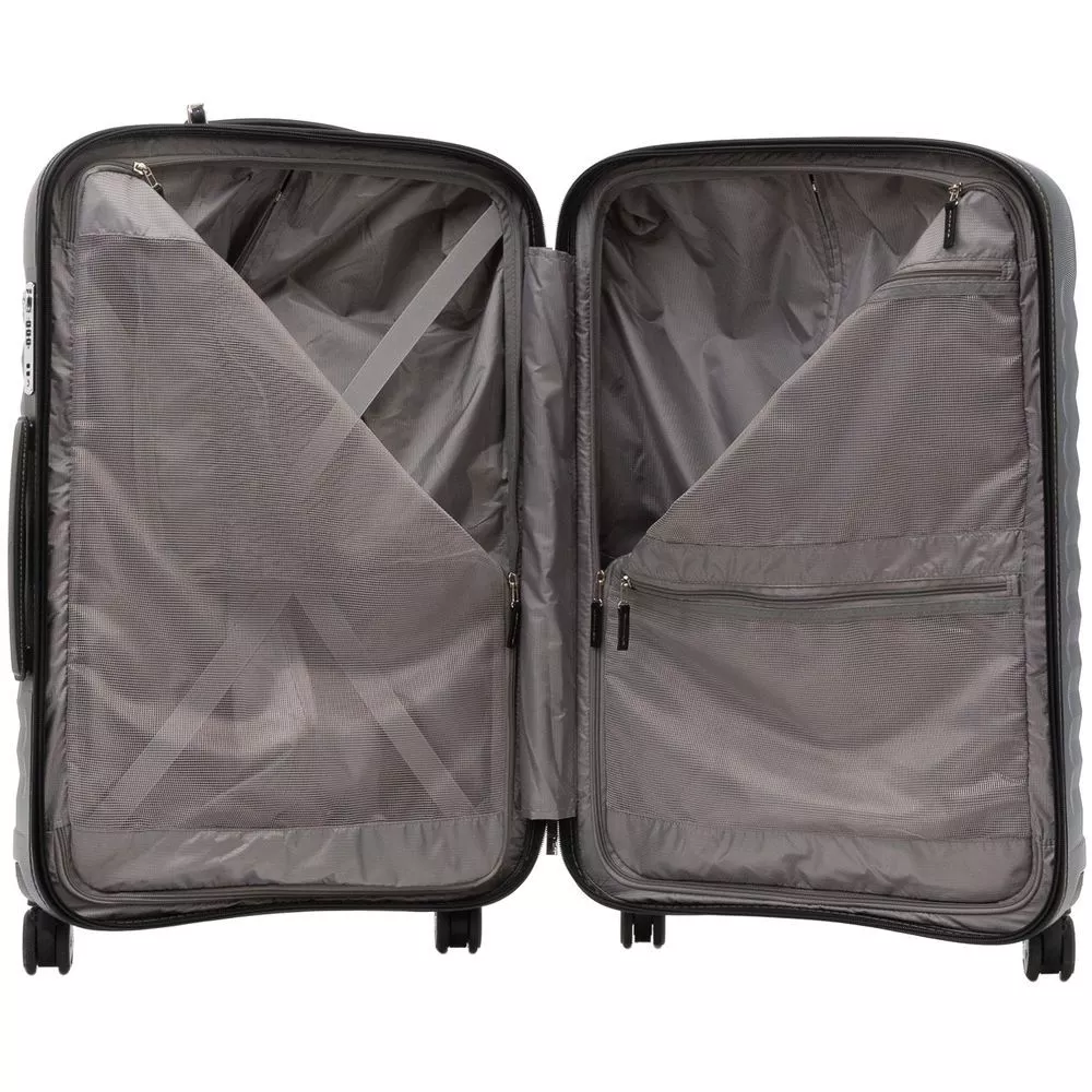 Чемодан E-Lite изготовлен из ударостойкого поликарбоната с интересной ребристой фактурой — эффектно смотрится, противостоит появлению царапин и выгоранию, сохраняя первозданный внешний вид изделия.