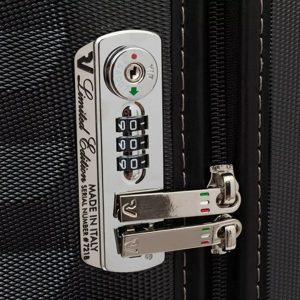 Наружные и внутренние элементы — ручки, фурнитура, обрамление молний, адресная бирка — выполнены из натуральной кожи, благодаря которой чемодан приобретает по-настоящему изысканный вид.