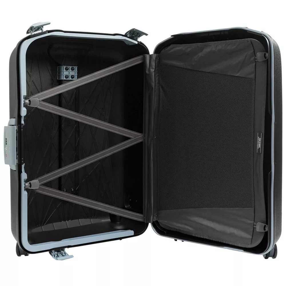 Корпус из жесткого полипропилена устойчив к ударам и царапинам, обладает высокой прочностью и позволяет бережно перевозить даже хрупкие вещи.
