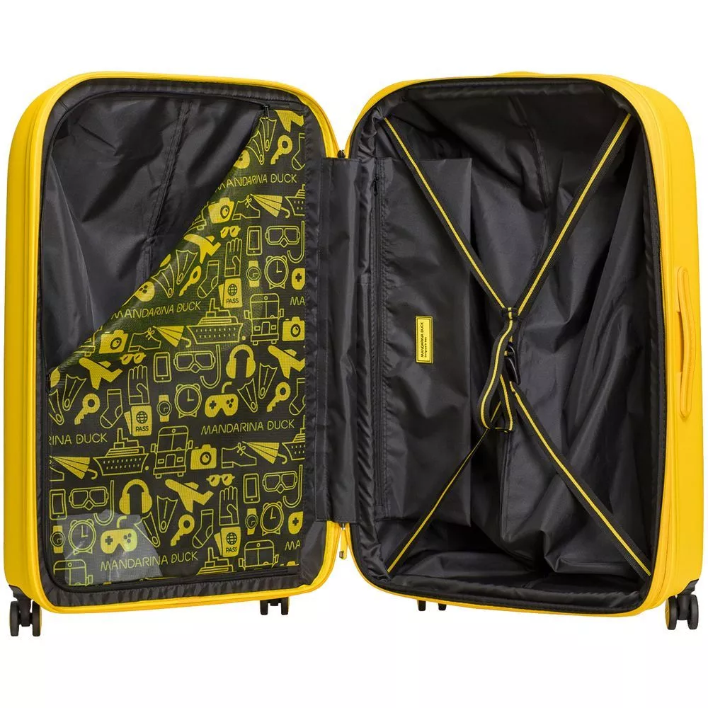 Коллекция чемоданов из поликарбоната Logoduck+ стала настоящим бестселлером: обтекаемые изящные формы, колеса в тон корпуса, крупный логотип бренда, подкладка с принтом и яркие цвета делают их уникальными в своем роде. Упаковочные ремни, разделитель на молнии и дополнительный карман для мелочей помогут аккуратно упаковать все необходимые вещи для длительного отпуска или семейной поездки.