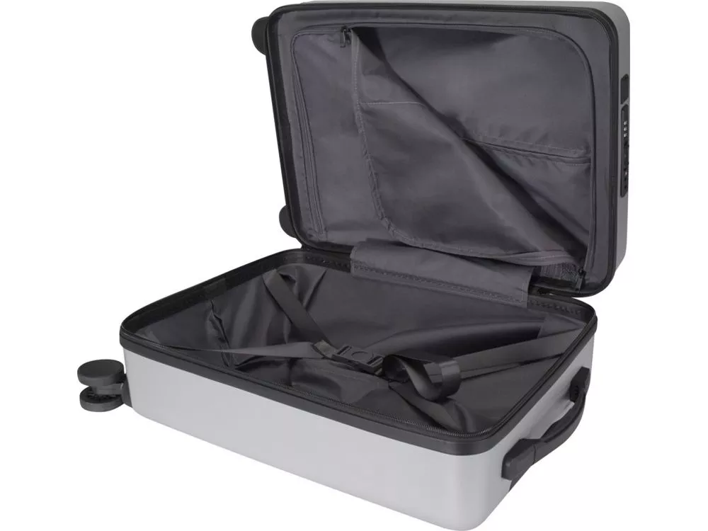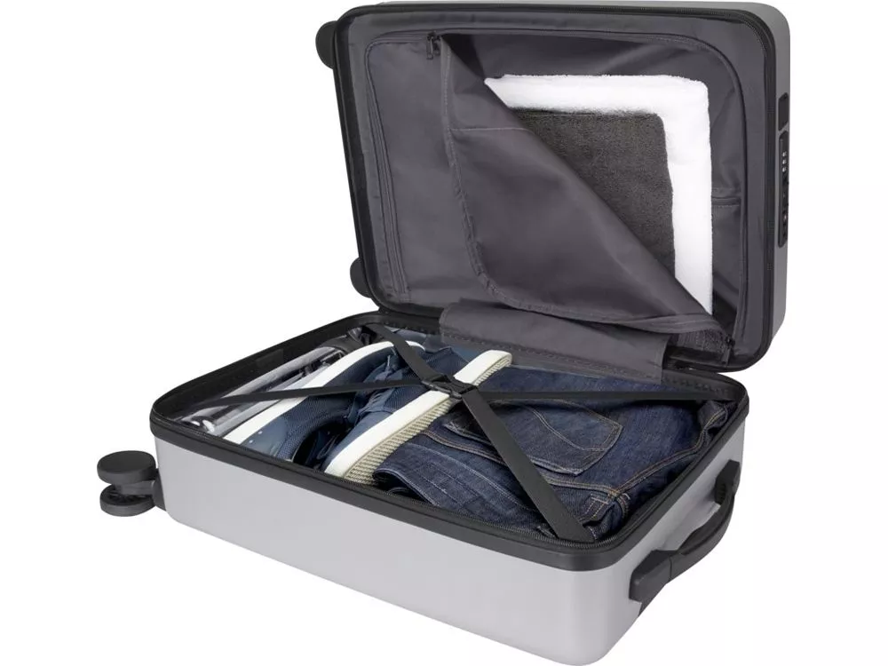 Чемодан на колесах для ручной клади Rover Pro диагональю 20 действительно выделяется своим открывающимся спереди отделением для ноутбука диагональю 20 и встроенным USB-портом для зарядки, что делает ее идеальным спутником как в деловых поездках, так и на отдыхе. Этот чемодан на колесиках изготовлен из ударопрочного переработанного пластика, сертифицированного согласно GRS, и качественной подкладки из RPET, а также оснащен открывающимся спереди отделением для ноутбука с карманами-органайзерами для электронных аксессуаров, а также кодовым замком TSA как для основного, так и для открывающегося спереди отделения. Чемодан также оснащен двухколесными вращающимися на 360 градусов роликами для удобства использования в аэропортах. Можно брать с собой в качестве ручной клади на рейсах большинства основных авиакомпаний. GRS certified recycled ABS.