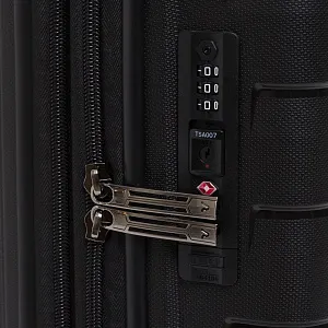 - Чемодан с 2 отделениями: одно из них с фиксирующими ремнями и сетчатой шторкой на молнии, второе — с разделителем на молнии