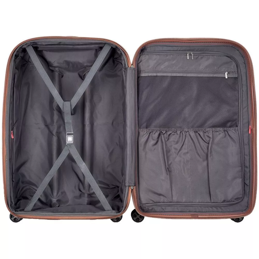 Чемодан St Tropez — это элегантный до мельчайших деталей аксессуар, который идеально подойдет как для отпуска, так и для деловых поездок. Чемодан с прочным корпусом из поликарбоната с рельефным микроузором и отделкой из экокожи придает образу французскую изысканность, а также обеспечивает сохранность вещей.