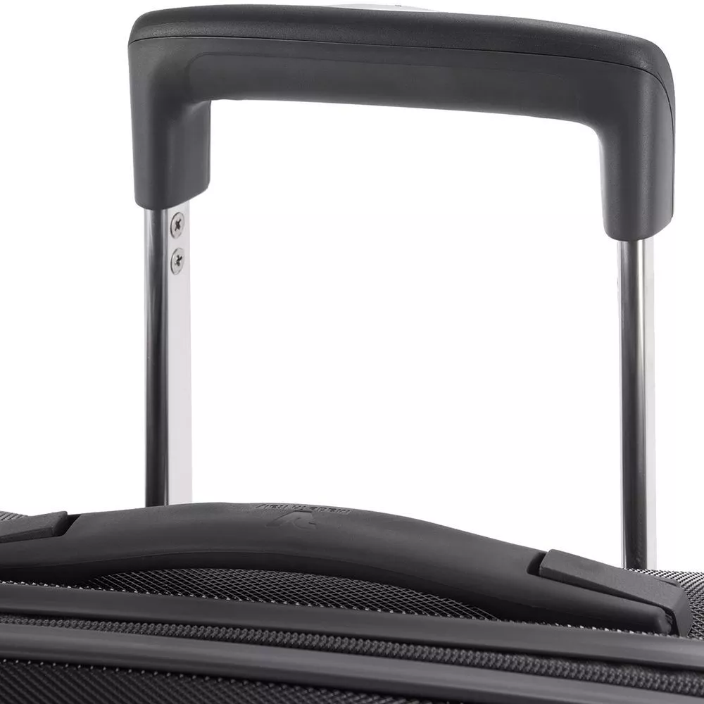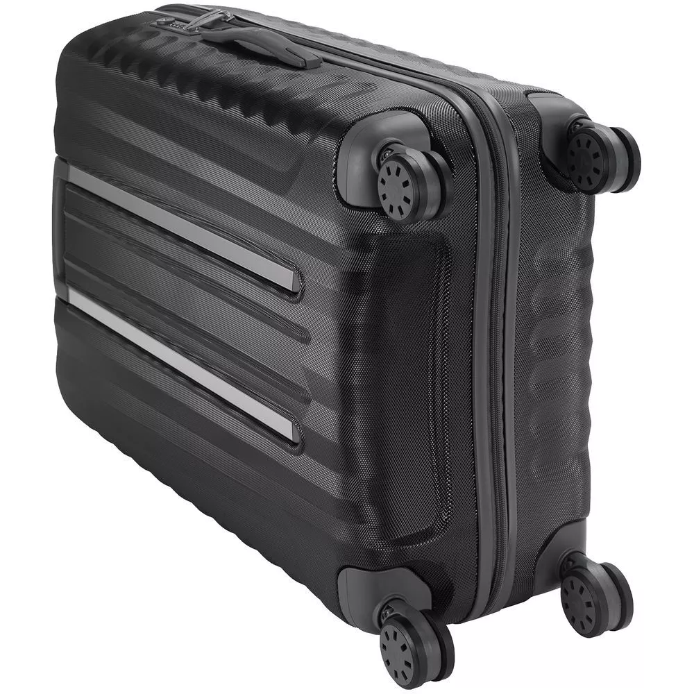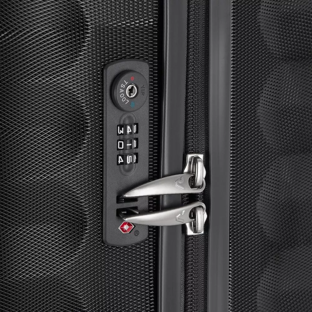 Корпус изготовлен из ударостойкого поликарбоната с покрытием, имитирующим алмазные пики — такая технология препятствует появлению царапин и делает чемодан еще более прочным и выносливым.