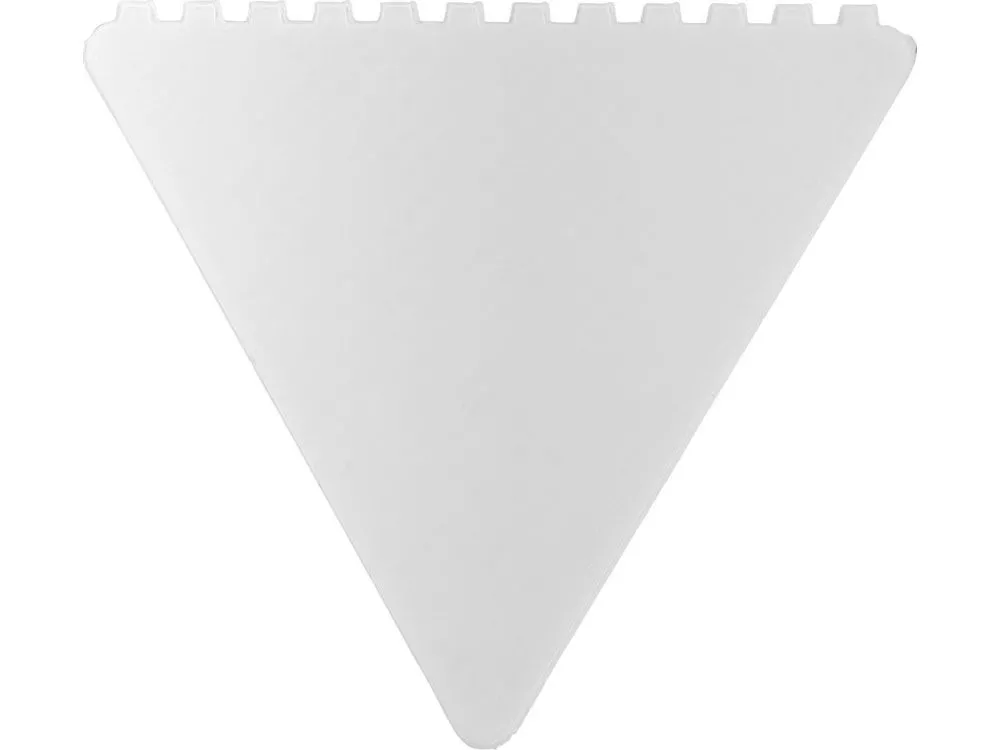 Треугольный скребок для удаления льда с лобового стекла, имеющий большую площадь для декорирования. Сделано в Великобритании из переработанного полистирольной пластмассы. Переработанный HIPS пластик.