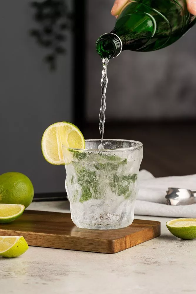 Cтакан Ice Essence притягивает взгляды оригинальным дизайном — он словно выточен из куска природного льда. Необычная мятая форма и словно заиндевелое стекло никого не оставят равнодушным.Емкость 300 мл.