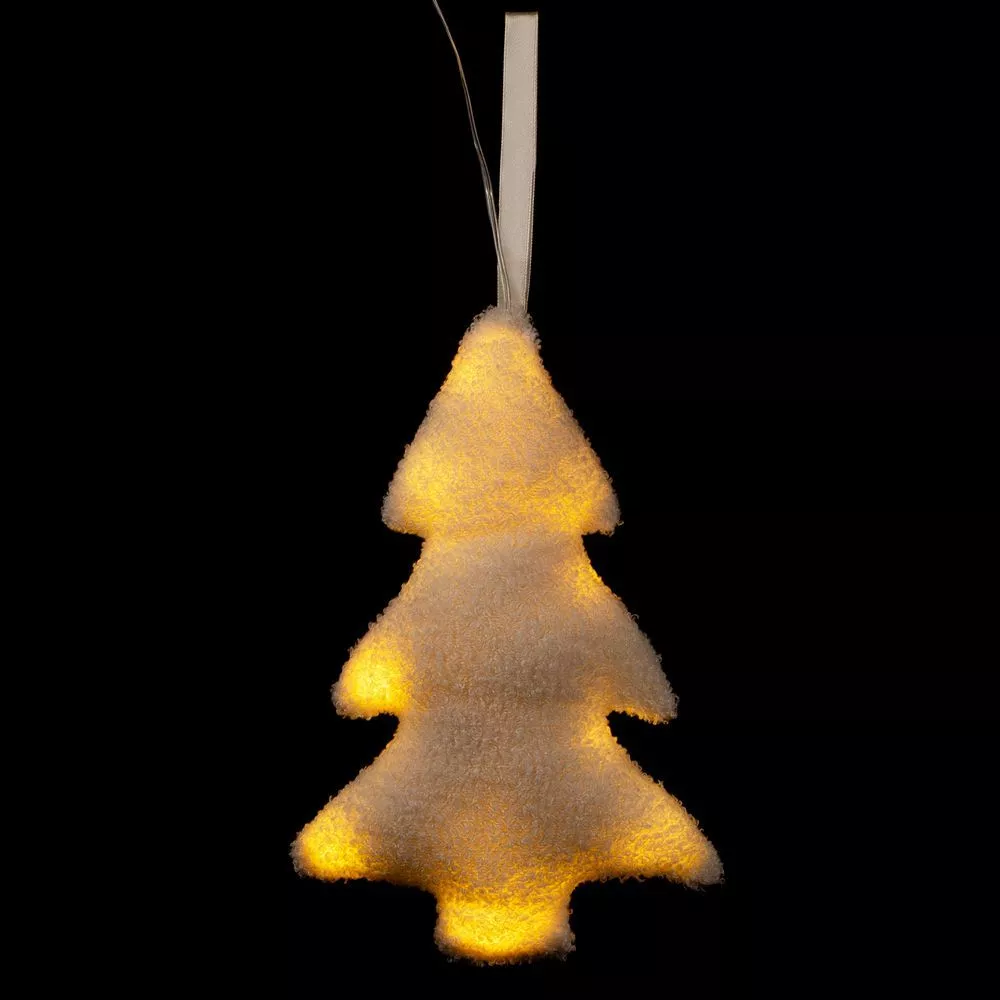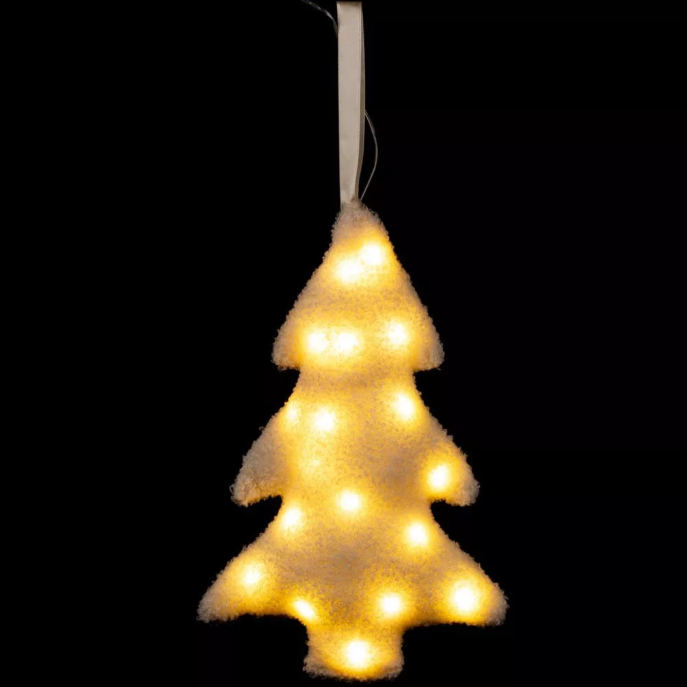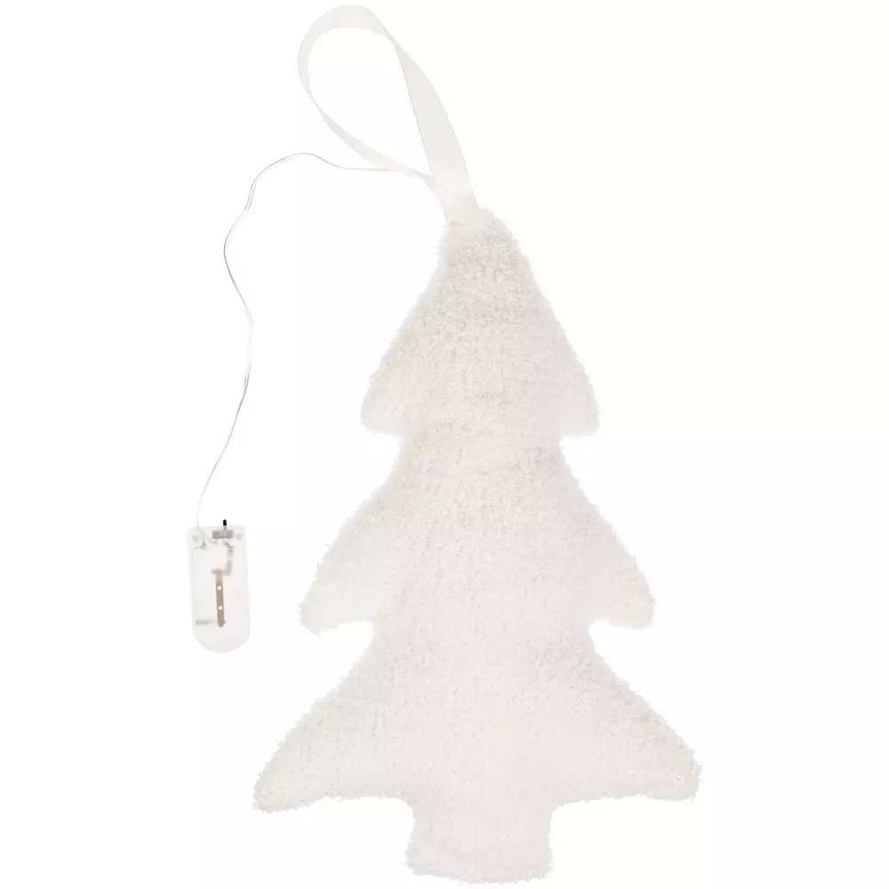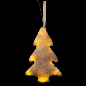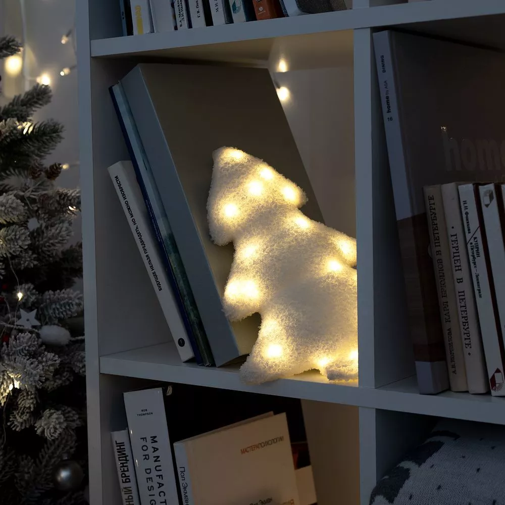 Внутри мягкой елочки находится миниатюрная гирлянда с теплым светом. Работает от 2 батареек типа CR2032 (в комплект не входят).