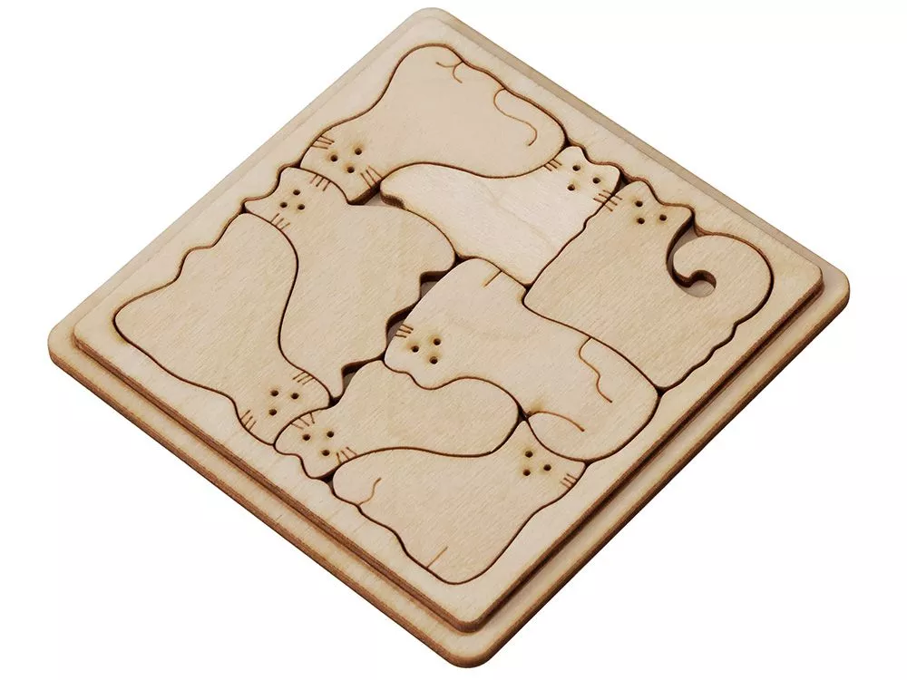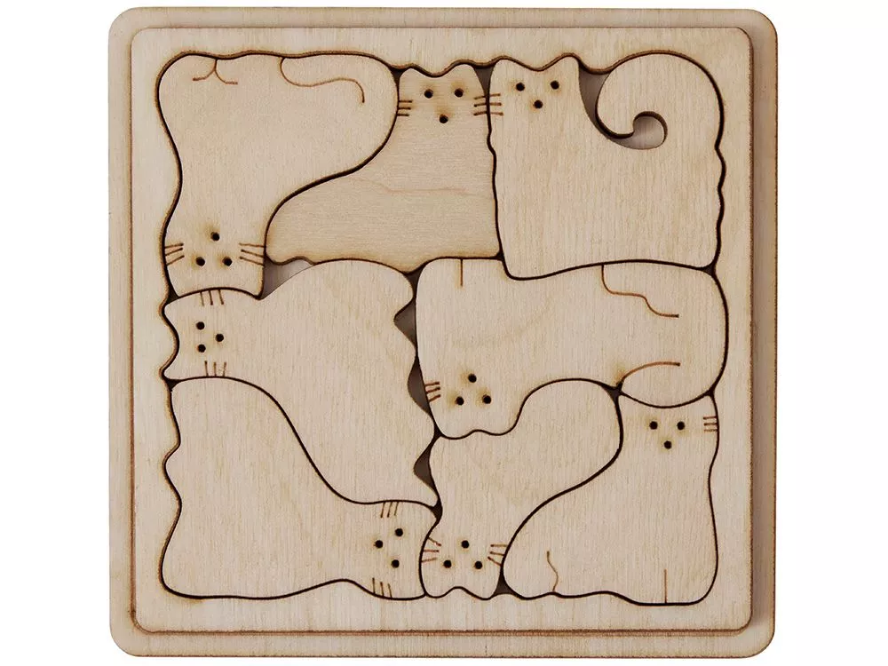 Деревянный танграм Catgram — 8 фигур Необычная интерпретация классической китайской головоломки — теперь в виде милых котиков! Вместо привычных геометрических фигур в наборе 8 котов, которых нужно сложить в единую фигуру. Это не только увлекательно, но и гораздо сложнее, чем кажется на первый взгляд. Как играть: - Основной способ — собрать всех 8 котиков в одно целое, уложив их в корпус или на ровной поверхности. - Творческий режим — выкладывайте из котиков любые формы, силуэты и образы. Вдохновляйтесь и экспериментируйте: логика + фантазия = бесконечные комбинации. Игра отлично развивает пространственное мышление, воображение и терпение, а благодаря необычной форме отлично подойдёт и детям, и взрослым. Изготовлена из берёзовой фанеры — прочной, лёгкой и приятной на ощупь. Удобный формат делает игру компактной и идеальной для путешествий. — 8 котиков в наборе — Развивает воображение и логику — Из натурального дерева — Легко брать с собой — Стильный и необычный подарок