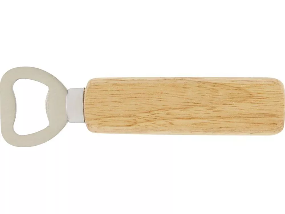 Открывалка для бутылок из нержавеющей стали с деревянной ручкой.