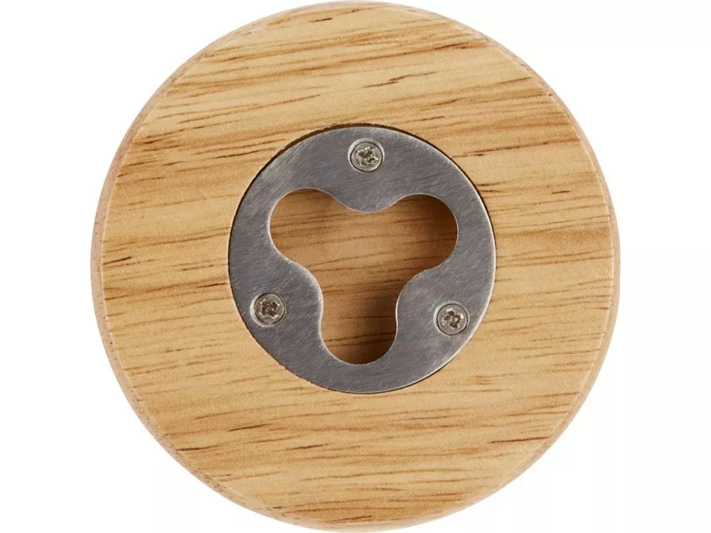 Деревянная подставка с открывалкой из нержавеющей стали. Дерево, нержавеющая сталь.