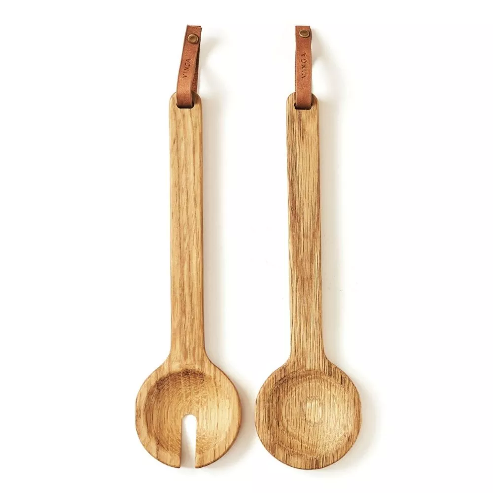 Красивая сервировка переводит ужин на другой уровень. Деревянные приборы — отличный пример того, как даже небольшие детали заставляют взглянуть на салат по-новому. Они изготовлены из древесины дуба, а тонкие петли из искусственной кожи добавляют стильный акцент. Подача блюд будет не только эффектной, но и удобной: приборы отлично подходят для перемешивания и накладывания салатов. Древесина дуба сертифицирована FSC®.