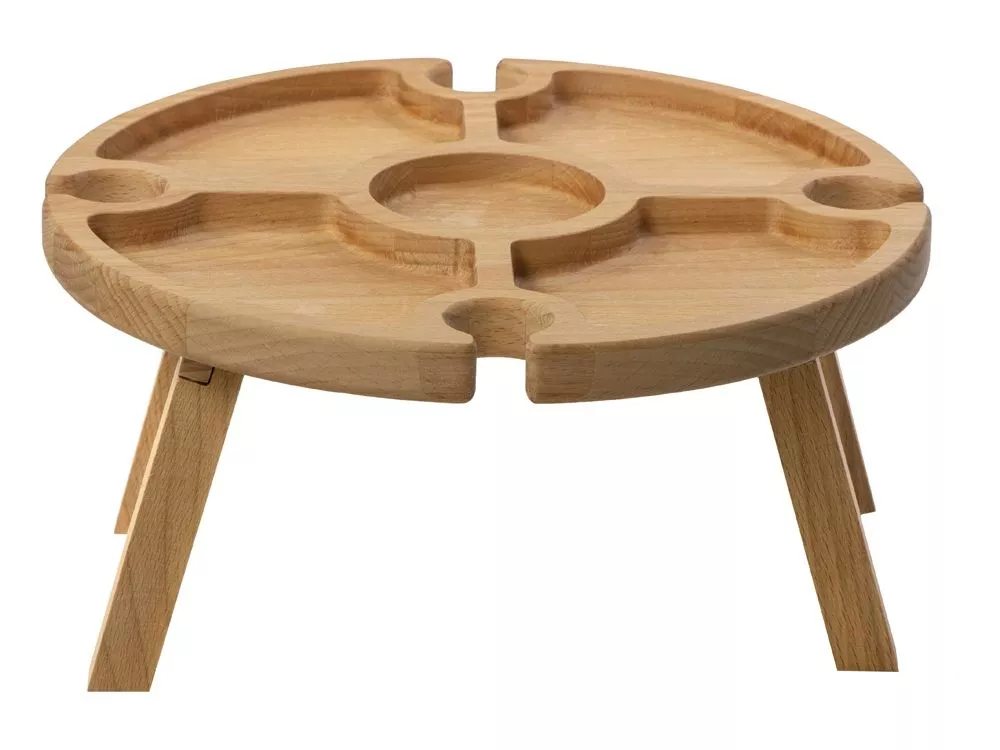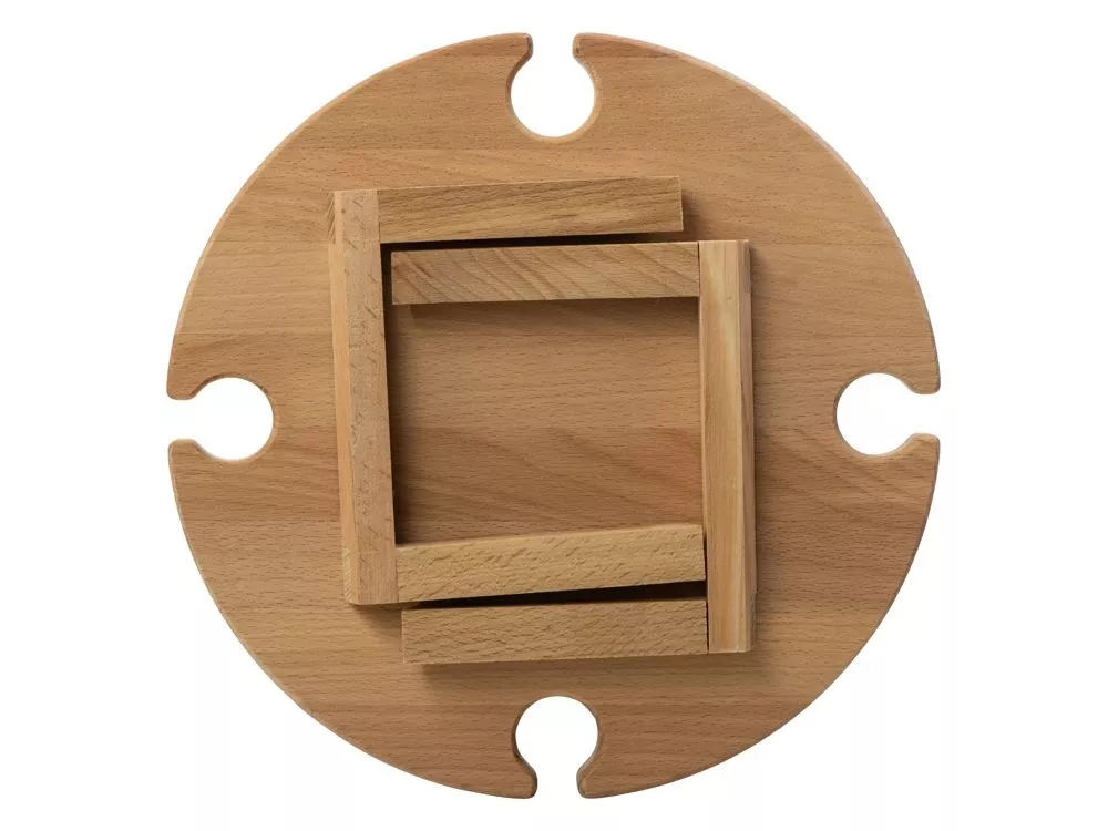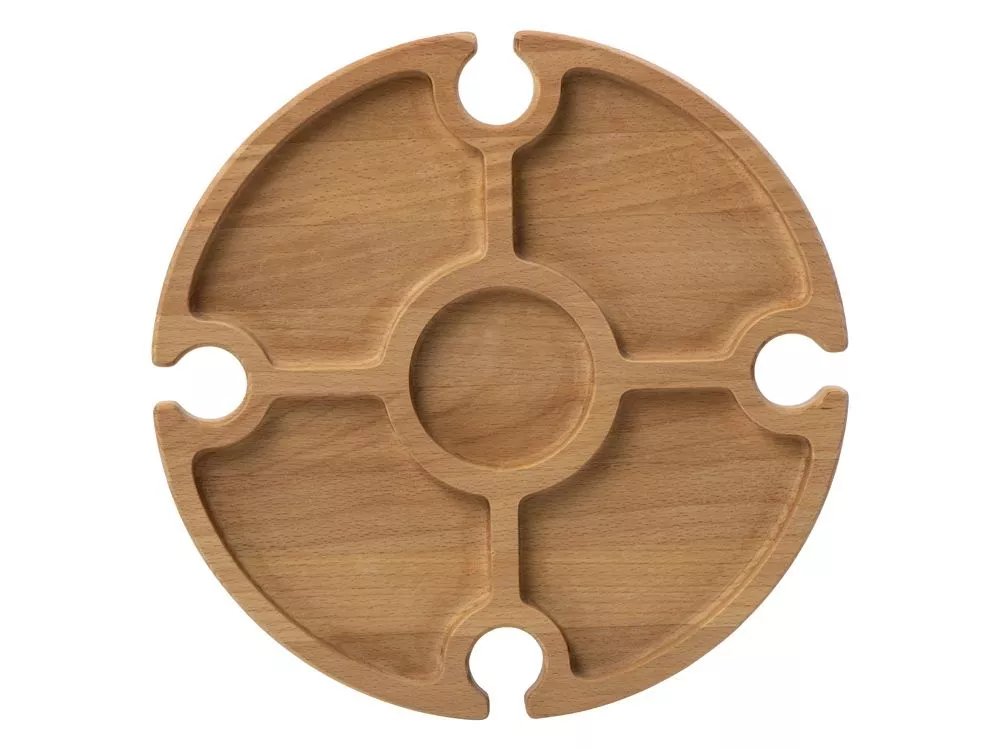 Деревянный столик на складных ножках может быть использован как во время пикников на открытом воздухе, так и дома, где его можно использовать прямо на полу. Столик позволяет подать 4 вида различных закусок, не смешивая их, благодаря четырем сепарированным секциям, в которые можно поместить ягоды, орехи и другие снеки, желательно, сухие либо подающиеся в масле (оливки, маслины). Четыре держателя для бокала особенно актуальны во время отдыха на природе, где каждый участник пикника обязательно оценит возможность зафиксировать посуду для вина. Помимо функциональности столика не можем не отметить и его эстетичность, которая позволяет изящно преподнести вино и снеки к нему. - 4 вместительных отделения для закусок - 4 держателя для бокалов - натуральный бук, обработанный минеральным пищевым маслом - удобные складные ножки - для приятных вечеров на природе и дома Натуральный бук, из которого выполнен столик, как и любое дерево, требует ухода, который существенно продлит ему жизнь и позволит радовать своего обладателя в течение многих лет. Пропитывание пищевым маслом (растительное, льняное и т.д.) раз в один-два месяца поможет сохранять свежий вид изделия. Рекомендации по использованию: - не рекомендуется использовать в посудомоечной машине, микроволновой печи, замачивать в раковине с водой; - не использовать агрессивные моющие средства; - использовать мягкую губку для очищения; - вытирать насухо после мытья. Гравировка (CO2 лазер) (Без чернения) на данный товар осуществляется бесплатно. Оплачивается только настройка оборудования в размере 950 рублей на весь тираж.