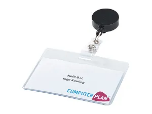 Совершенно необходимая вещь в офисе с современной системой безопасности или на презентации – это держатель для бейджа или карты доступа. Черный, синий и белый цвета. На пластиковый корпус можно сделать нанесение логотипа компании.