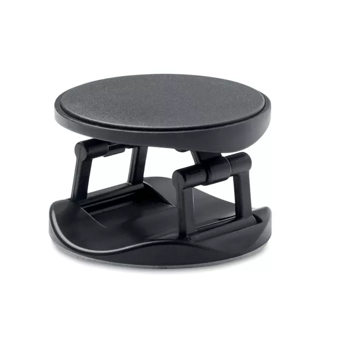 Складной аксессуар для телефона круглой формы из пластика с двумя функциями: подставка для телефона и держатель. Cтикер на задней поверхности.